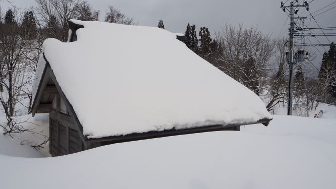 大峰峠のお堂は雪下ろしがされていた