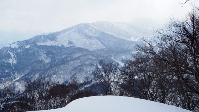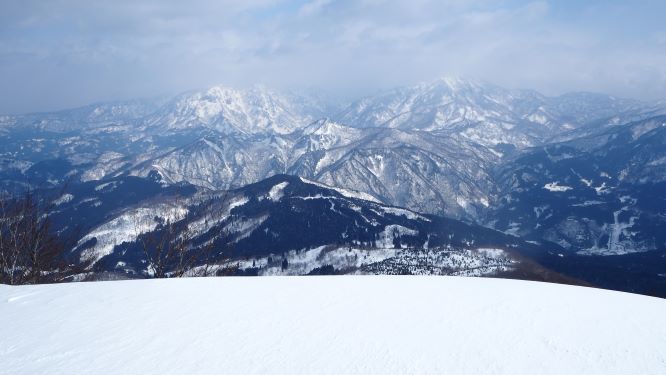 会メンバー3人による山スキー糸魚川遠征2日目である。前日の白鳥山はヤブに苦しめられ山頂まで到達できなかったので、もっと内陸の雪の多そうな赤禿山を目指す。夏道はなく積雪期限定の山だ。