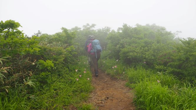 8合目付近からヒメサユリの登山道となって癒される。