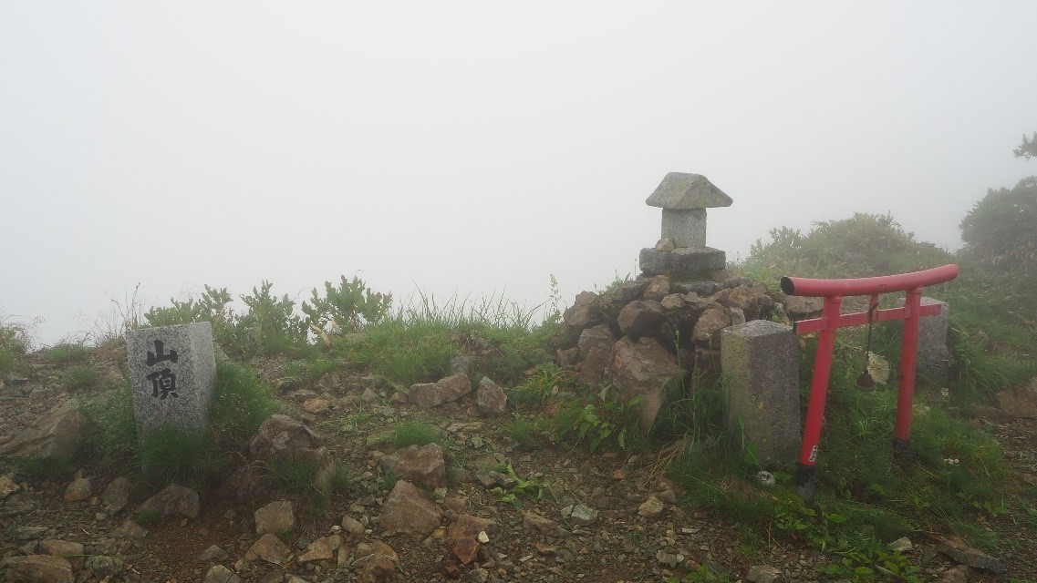 5合目から6合目までは残雪が多く登山道には雪解け水が流れていた。6合目を過ぎると再び登りとなり8合目から9号目までは最後のダメ押しともいえる急登となる。9合目から先は岩場を歩いてようやく山頂に着いた。