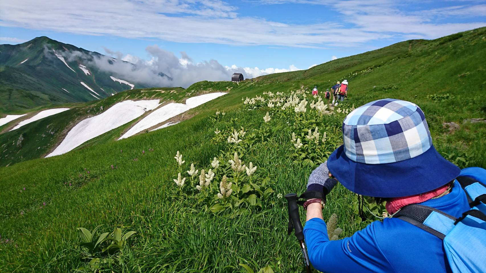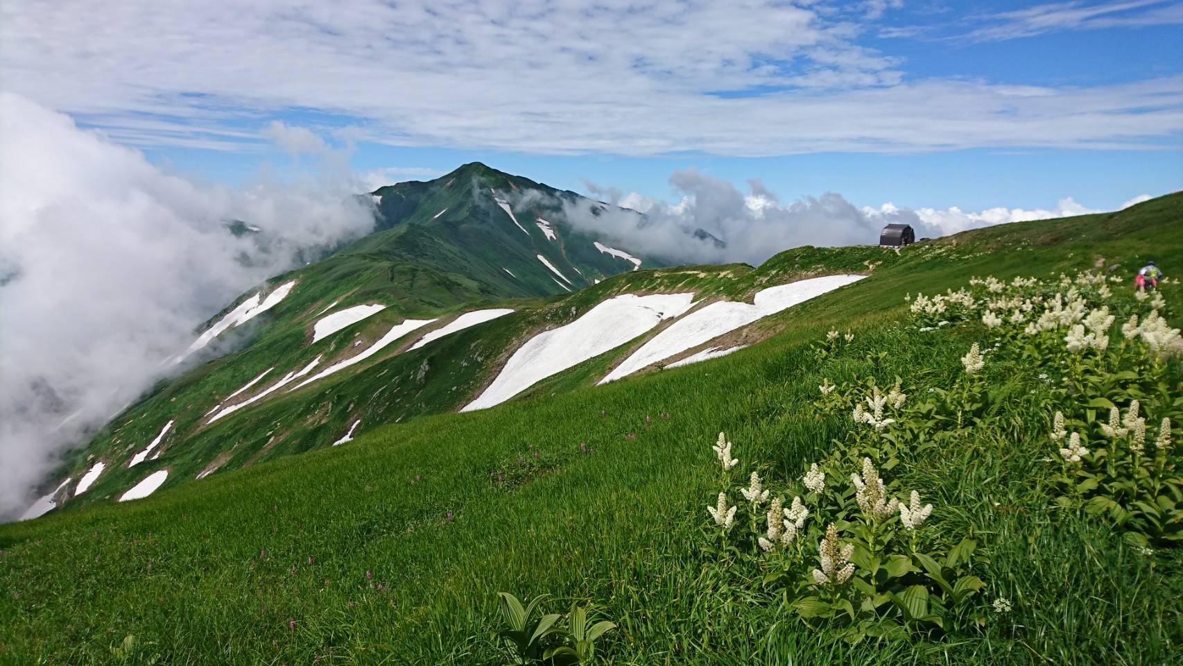快晴。憧れの飯豊稜線歩き。景色とお花で不思議なくらい疲れない。帰り道、御西の小屋から何度か雨が当たるが雨具がいらないくらいで歩くことができた。テントまであと30分くらいのところから、大粒の雨。