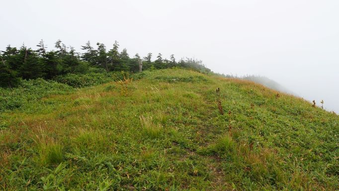 〈烏帽子 → 裏岩菅 ガスの切れ間からやっと見えた裏岩菅〉