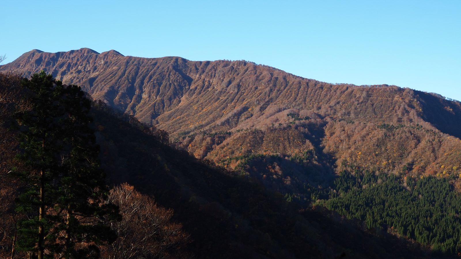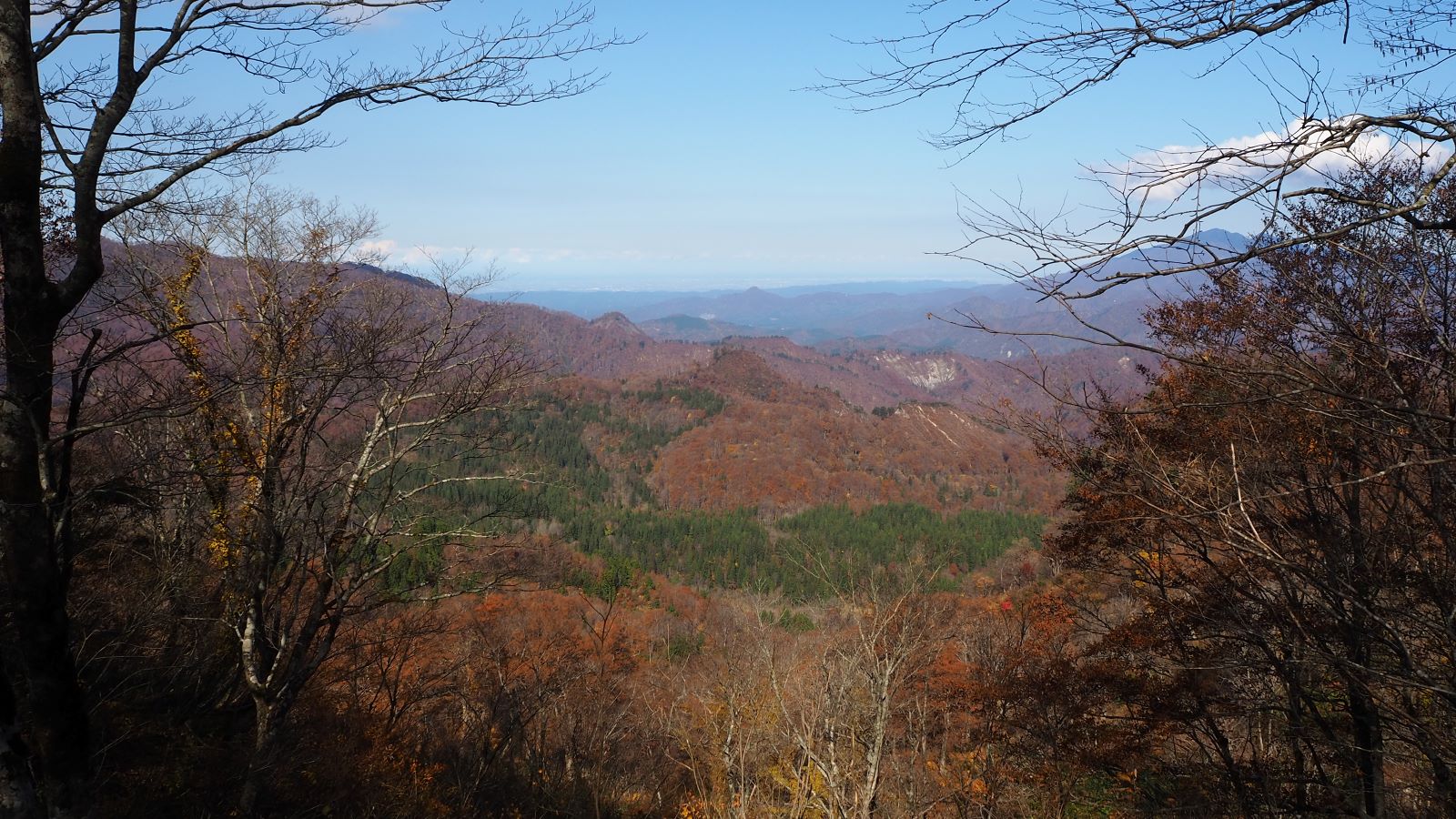 それにしてもなんと天気のいいことだろう。八十里越を歩くのにこれ以上の天気はない。葉を落とした木々の間からの展望も良い。体調も悪くない。順調に歩を進めた。