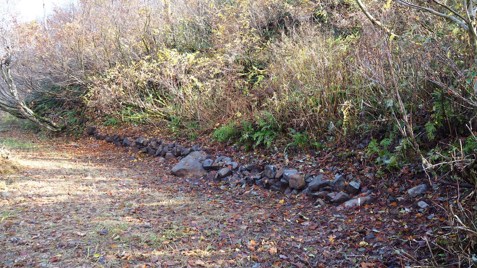 古道の跡を見ると明治のころの八十里越の道は2間幅(3.6m)で作られていたのではないかと思います。奥深い山中に立派な道を造ったものです。
