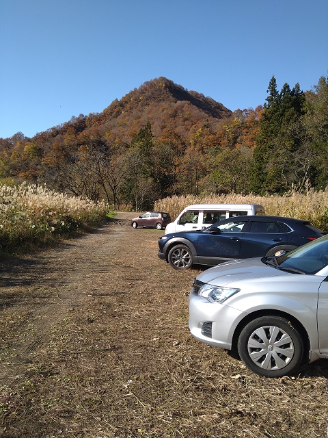 駐車場で、山荘管理人さんから人数と台数を聞かれ、今日はイベントも有り車が増えるので、山の人は別の場所に駐車を、とのことで、守門川を渡った先のスペースへの移動を指示される。