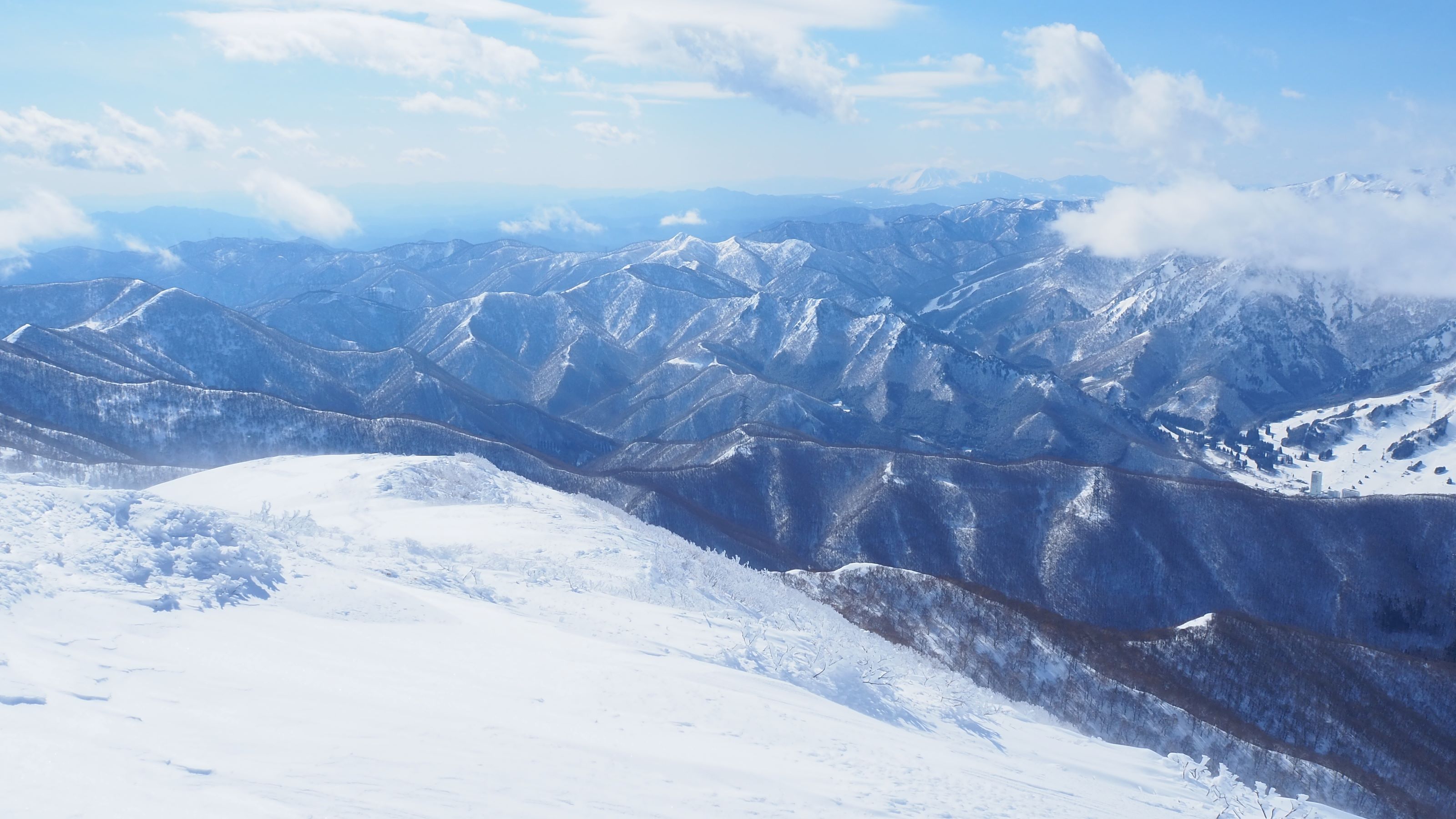 〈山頂から西方向 一ノ肩、松手山、さらに苗場山〉
