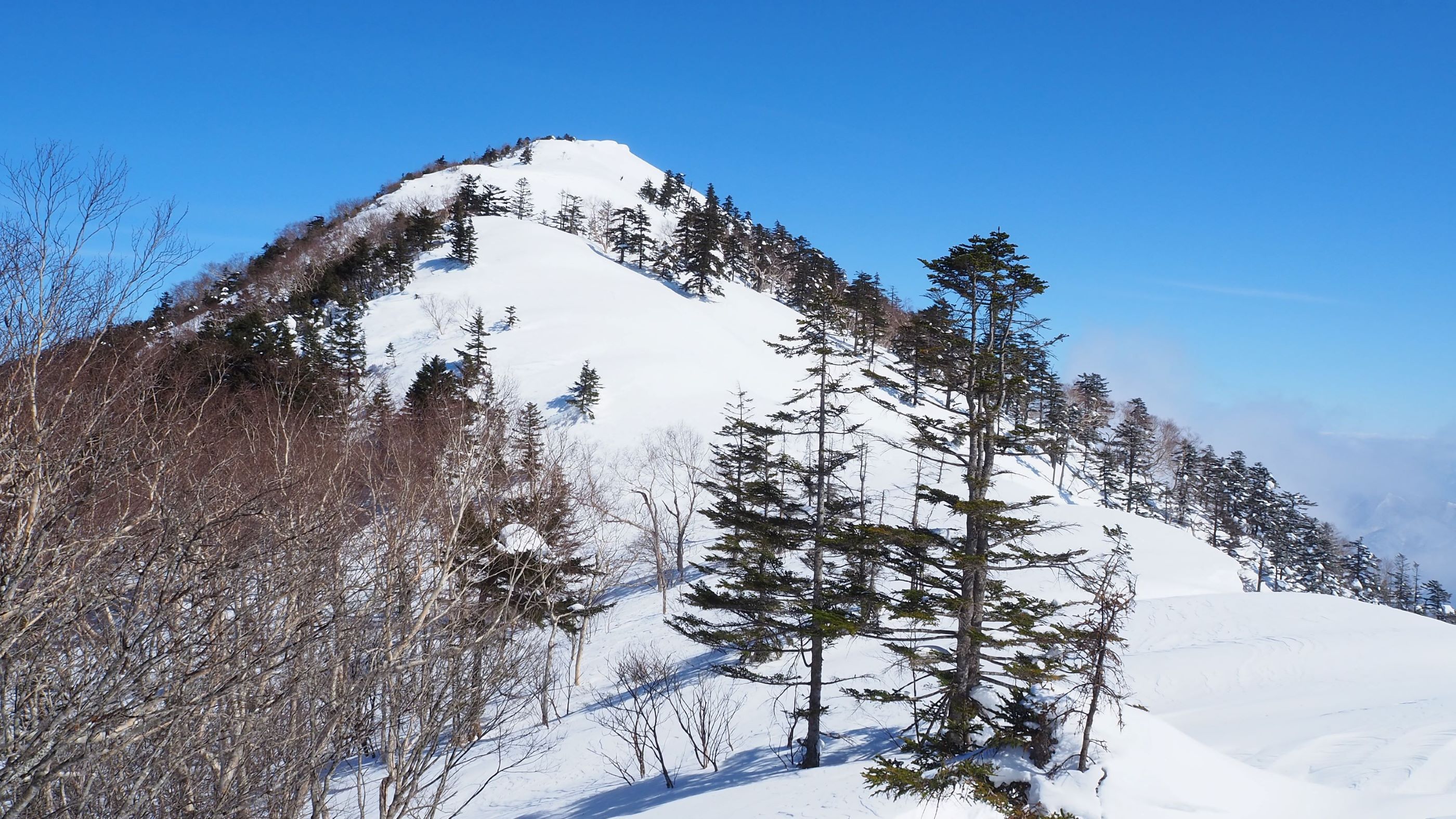 戸隠大橋から黒姫山へは積雪期の定番コースになっている。今回はさらに以前から行ってみたかった御巣鷹山まで足を延ばした。