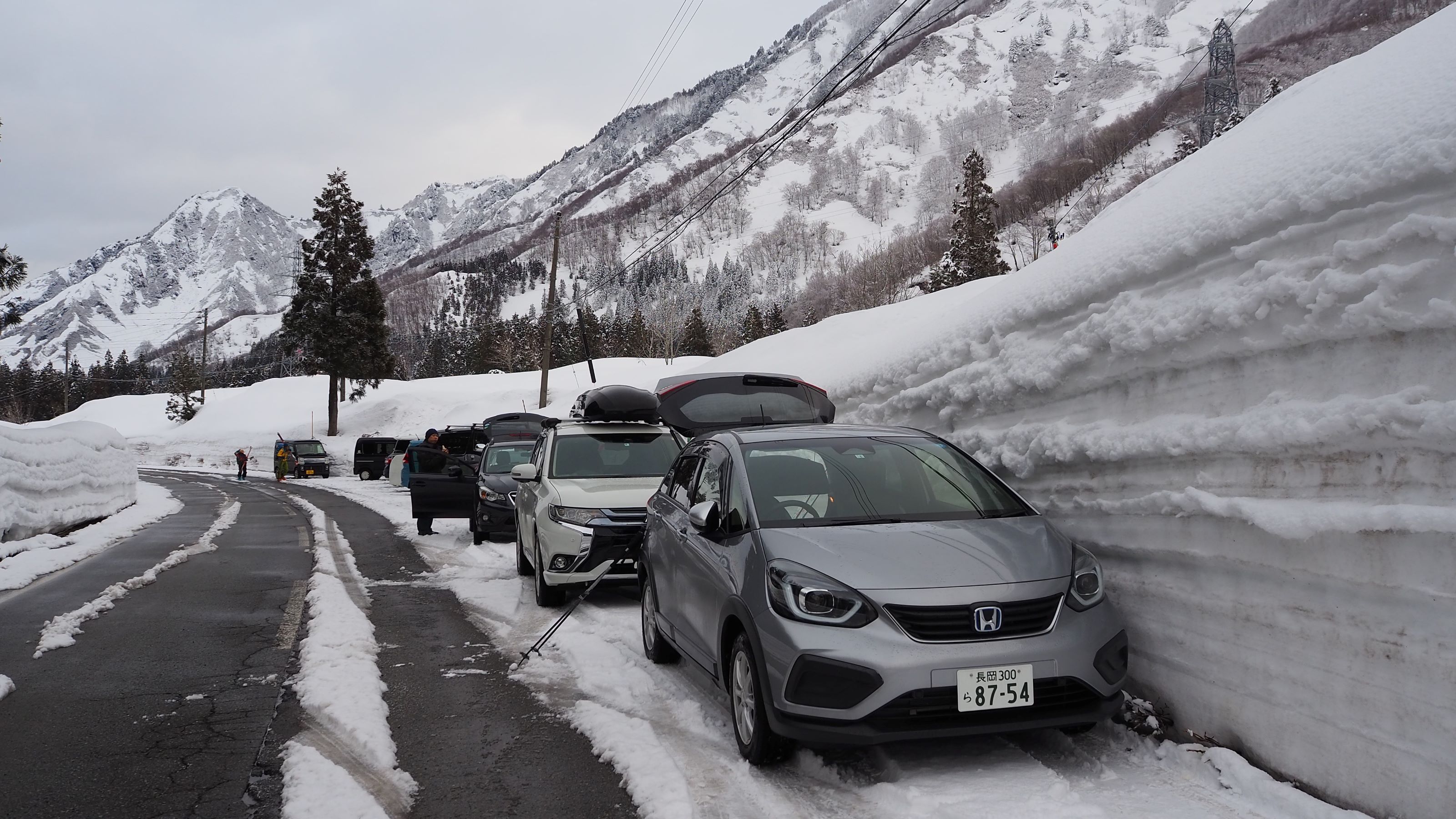 登山口駐車スペース。この日7時の清水の積雪深は308㎝