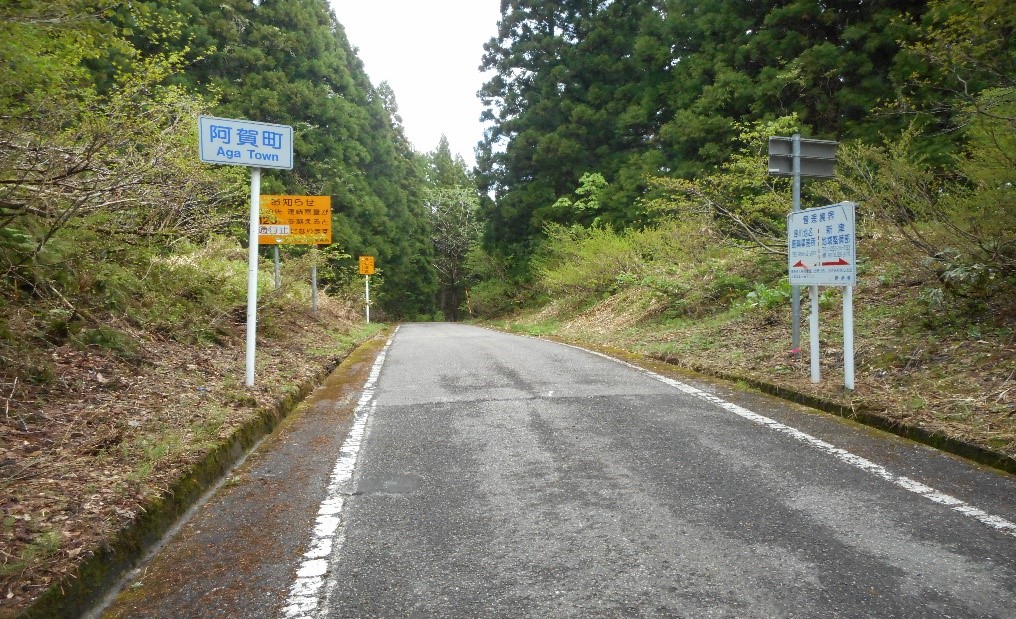 五泉市、阿賀町境界線より五泉市側100m位に赤テープ発見。この目印が多分登山道なのだろう。
