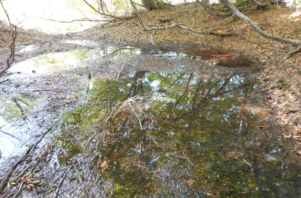 池塘の中に白い卵発見(中央部分)