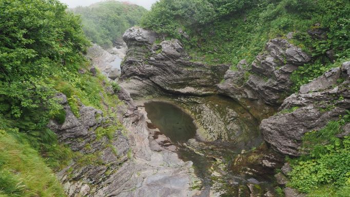 分岐の先で足下に異様な景観の沢が見える。水量が多いとすごい迫力だろう。
