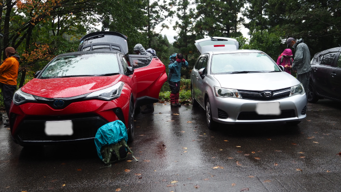 それでも、すでに車が2、3台。11人の登山者を乗せた山形県からのマイクロバスもあり。(その後このグループとは抜きつ抜かれつしながら歩く。)