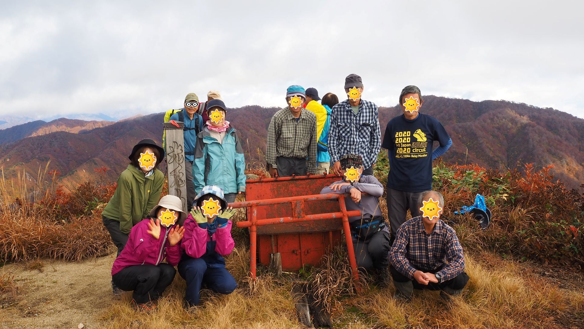 頂上での記念撮影、みんな弾けていました。