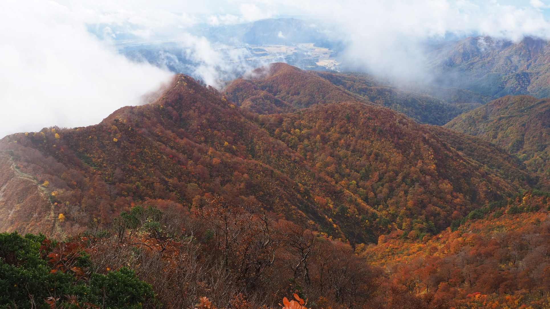 「中越ピ―カンだったのに。だんだん天気悪くなってきて」「今日は中越、上越の山だったなあ」。
