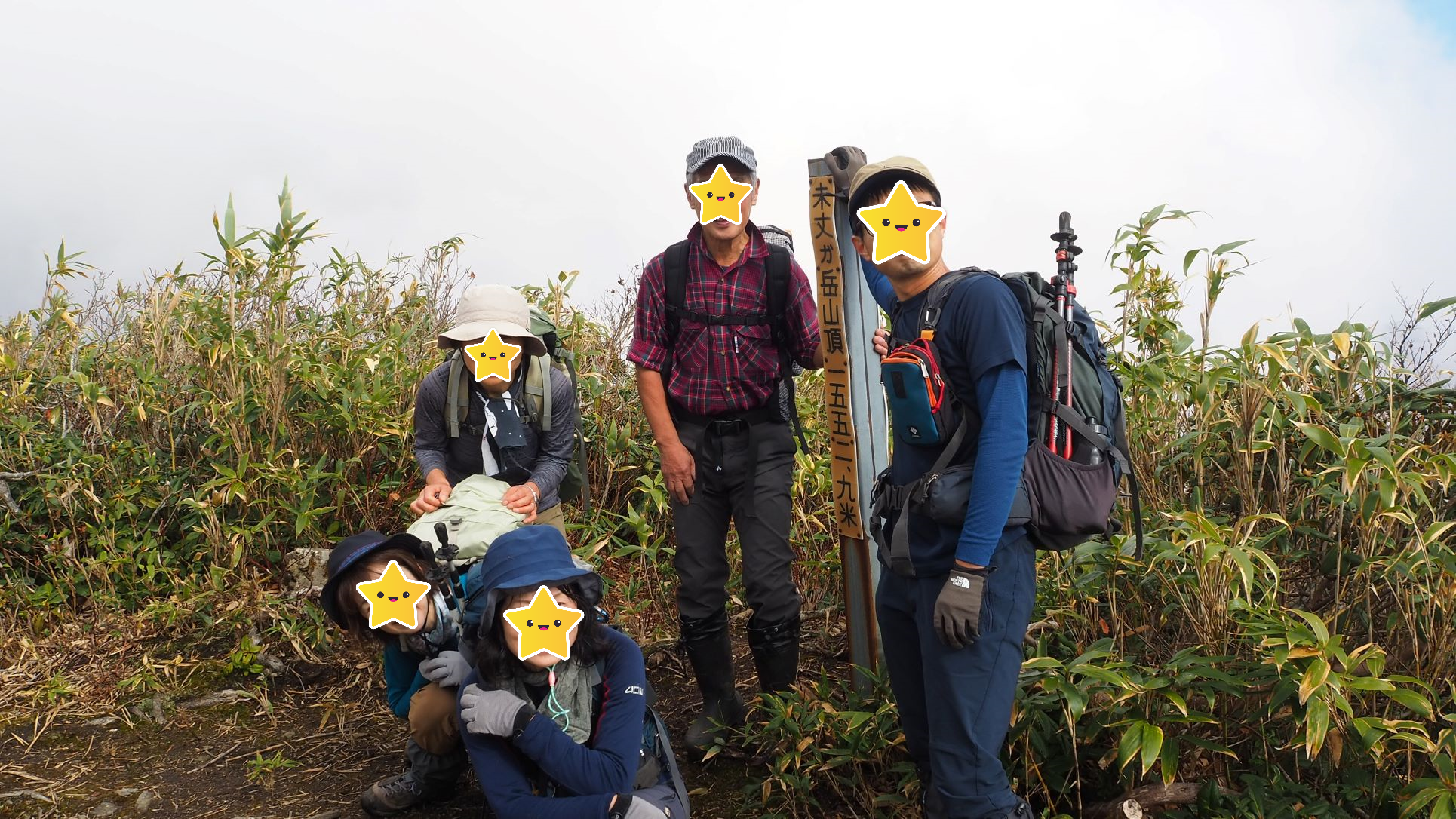 待ち合わせのシルバーライン入口では予想外のスーパー快晴だったものの歩き始めると雲が広がりだし山頂付近はガスに覆われるようになってしまった。