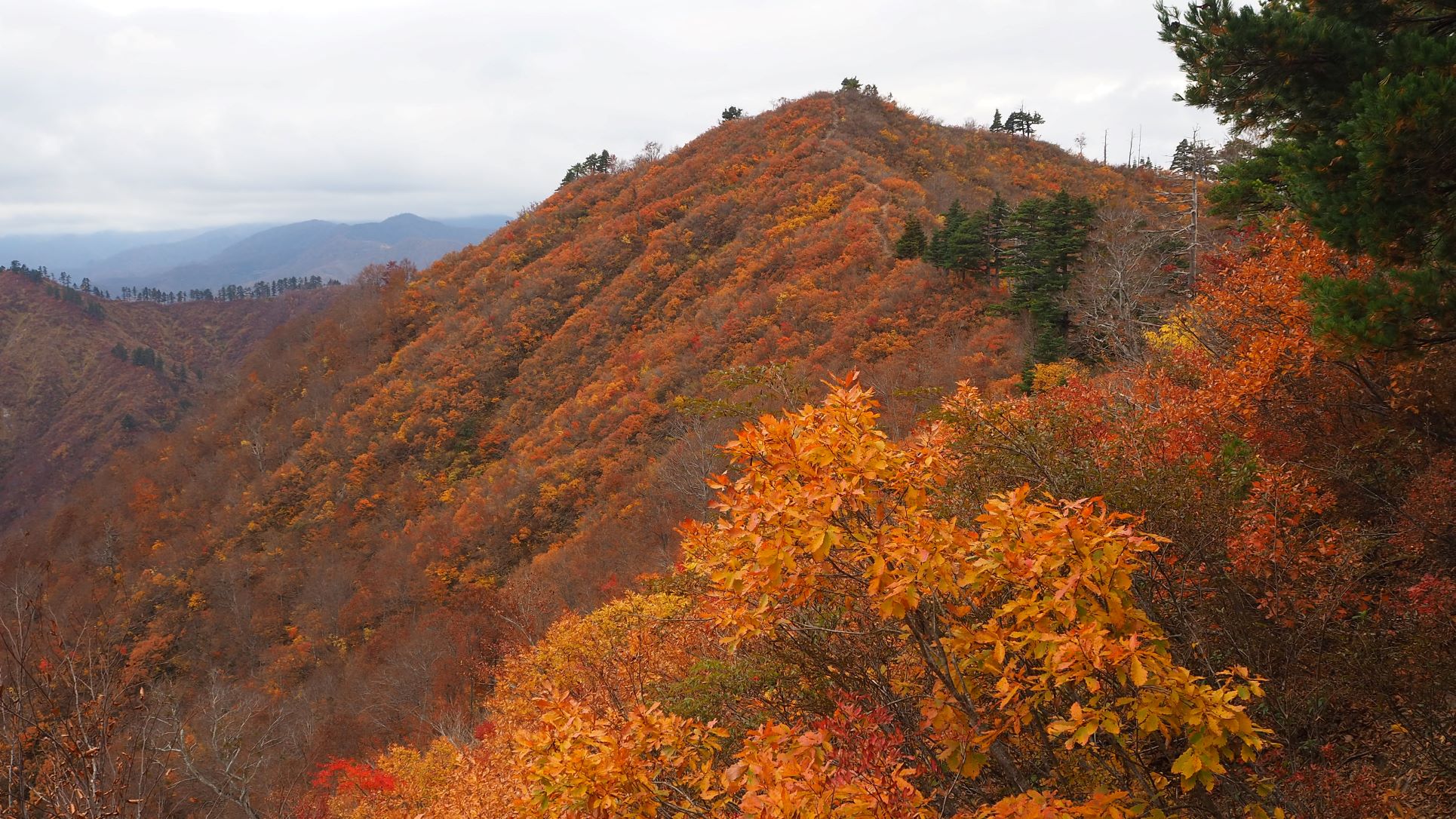 もう終盤の紅葉も鮮やかな赤や黄色に緑色の松が絶妙にミックスされてとても鮮やかでした。