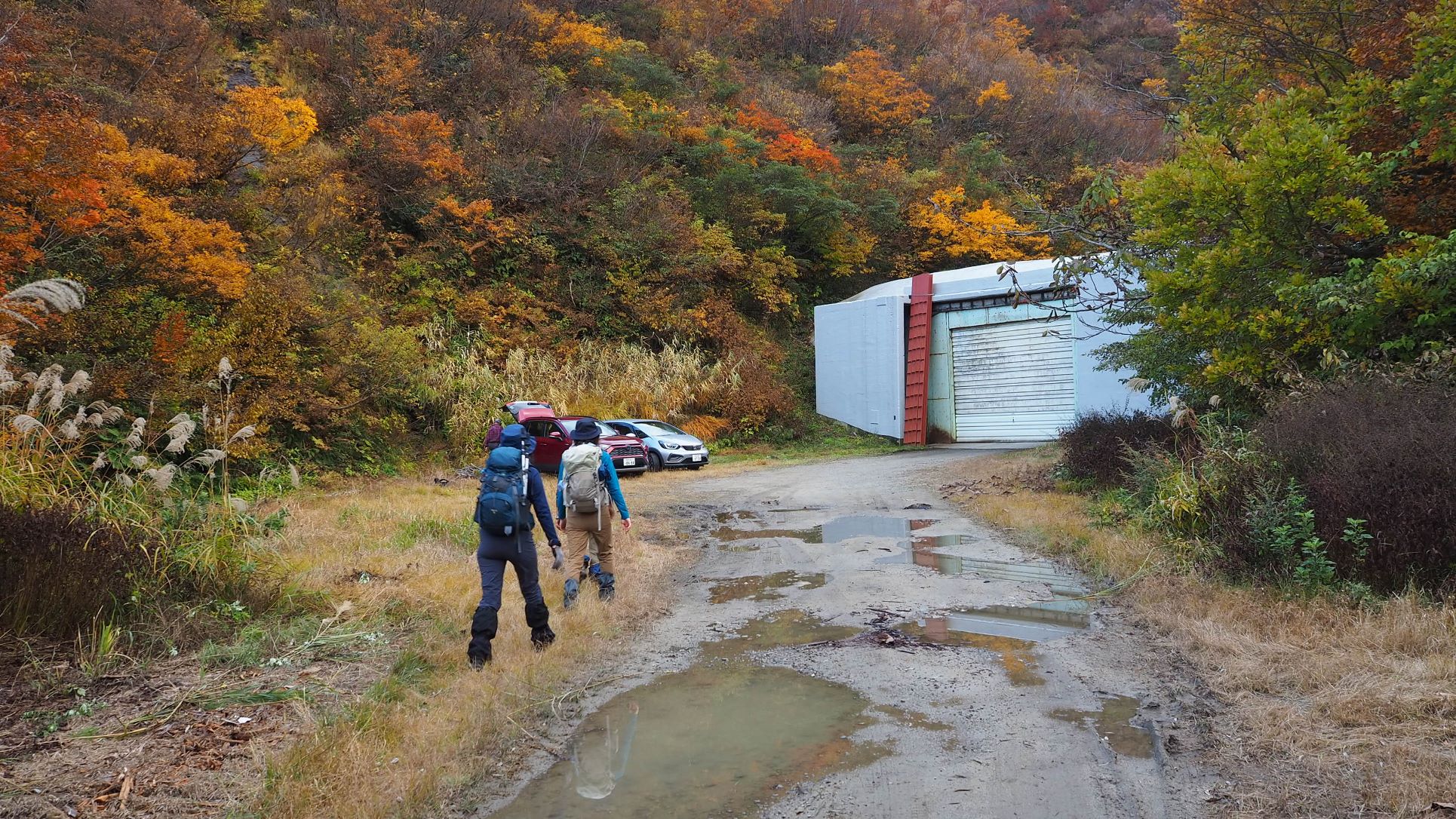 返ってきました。シャッター前の登山口