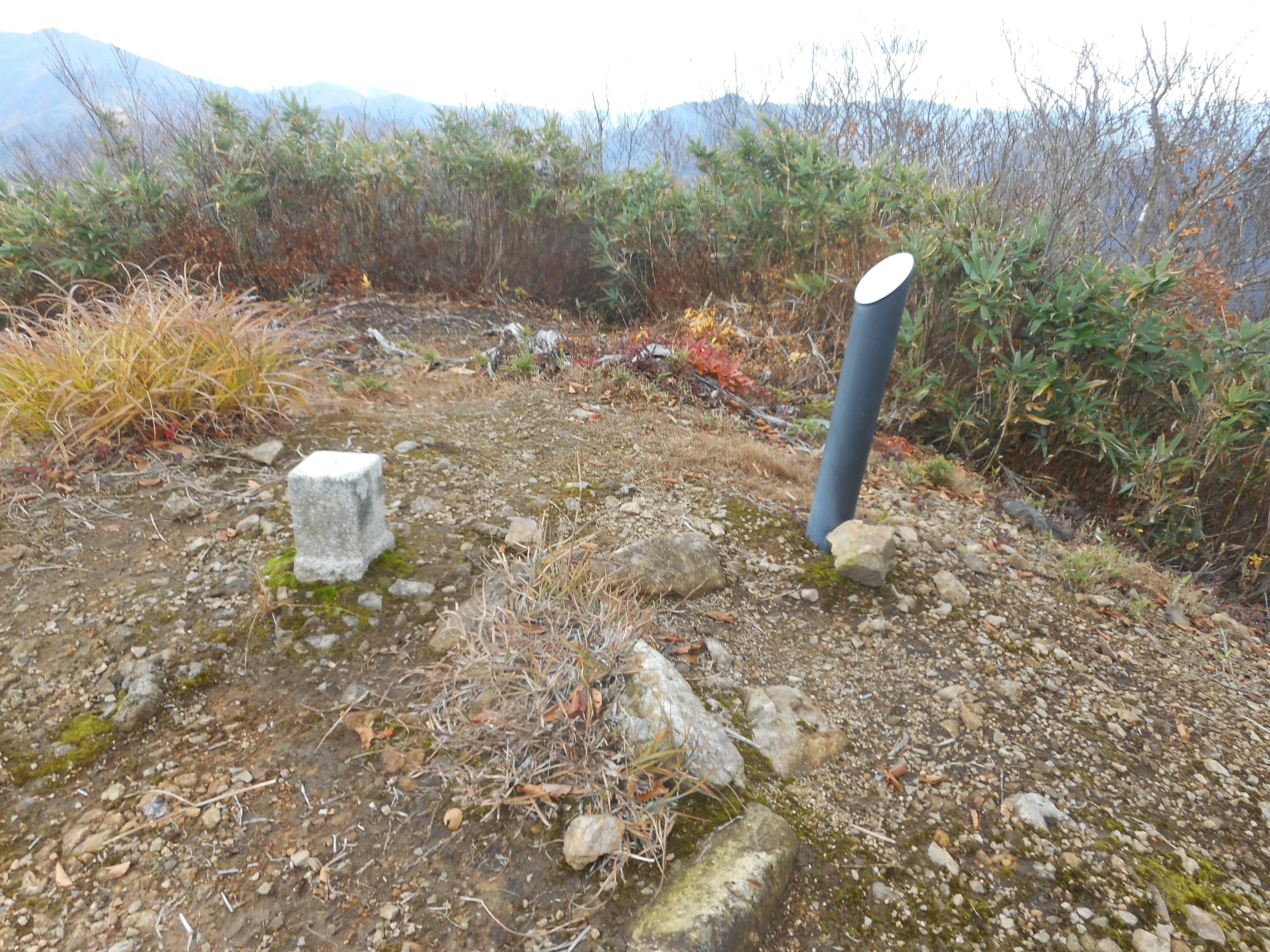 頂上から北方面は粟ヶ岳、堂ノ窪山、東方面はは矢筈岳、青里岳、五険谷岳が近くに見える。川内山塊最高。