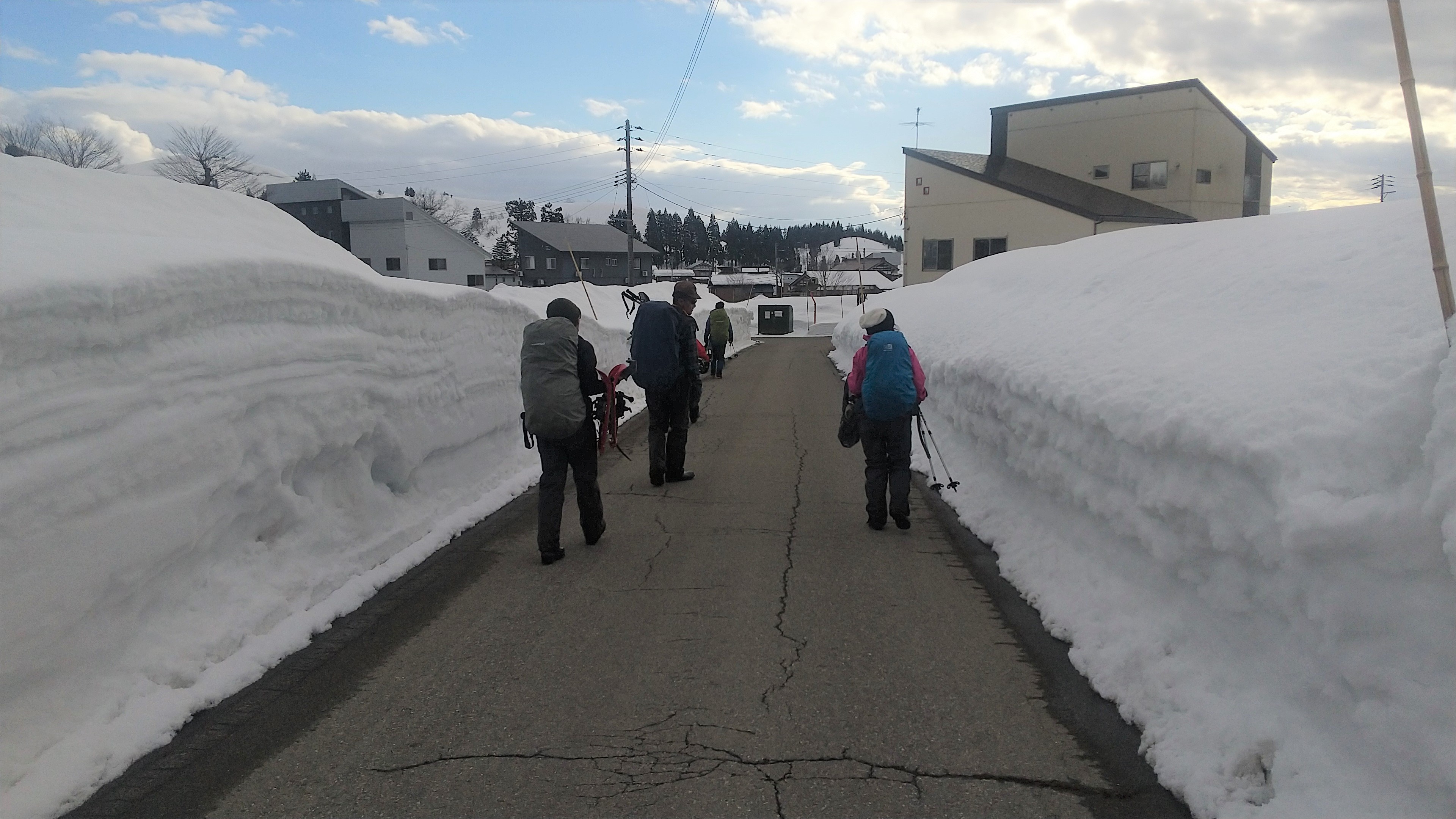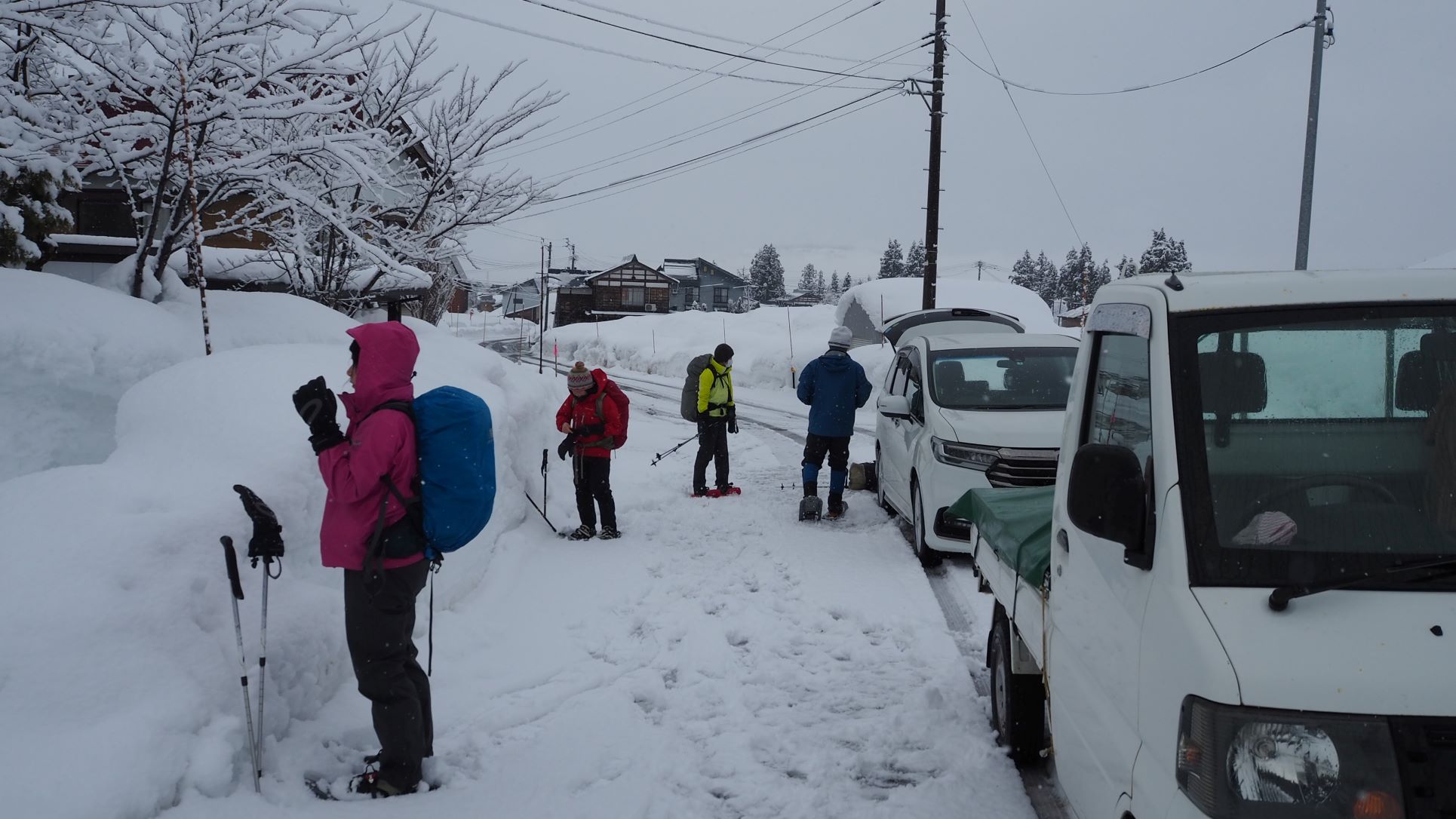 除雪の終点(標高150m)に車を置かせてもらって出発です