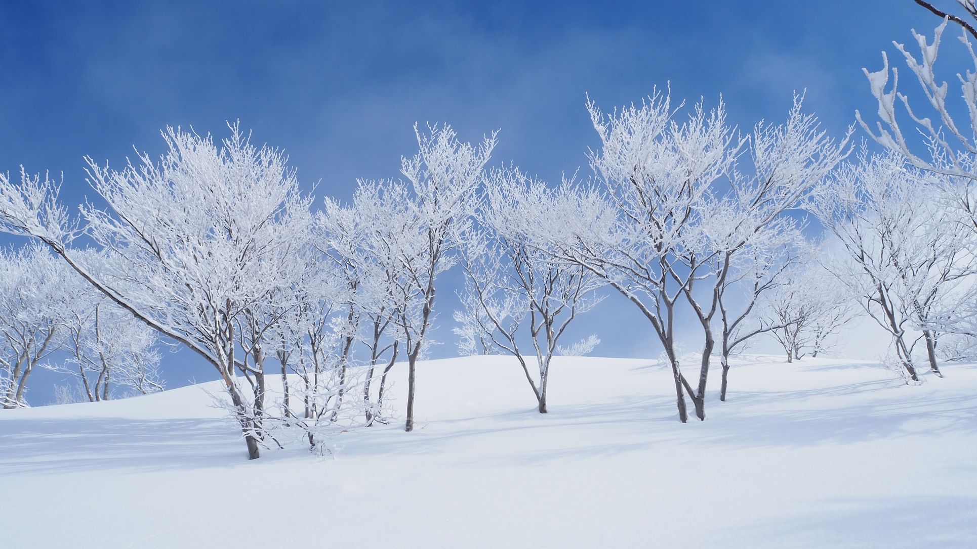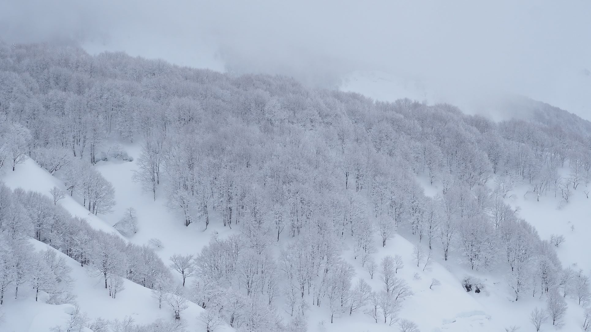 朝まで降っていた雪できれいに雪化粧をしたブナ林です
