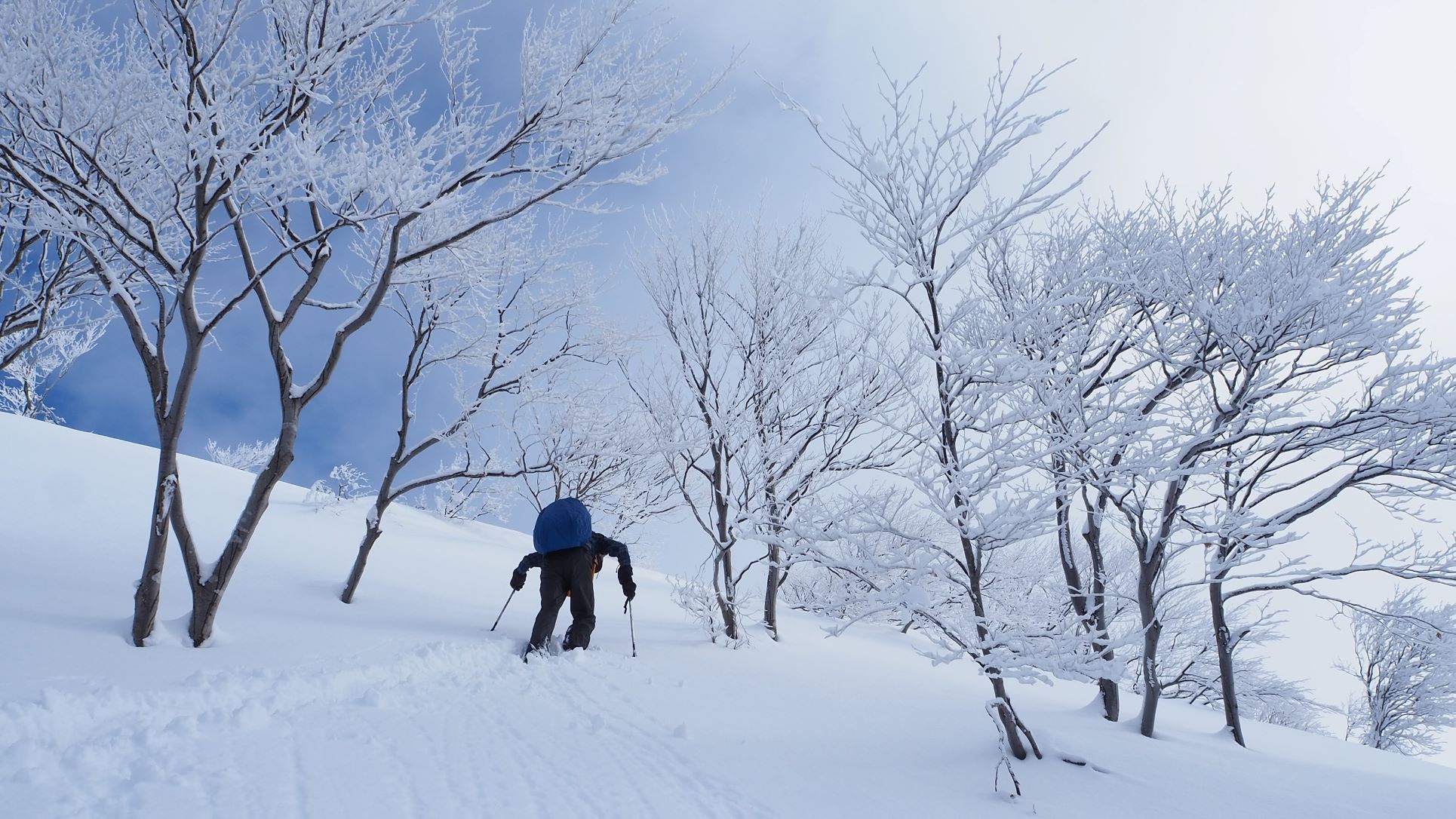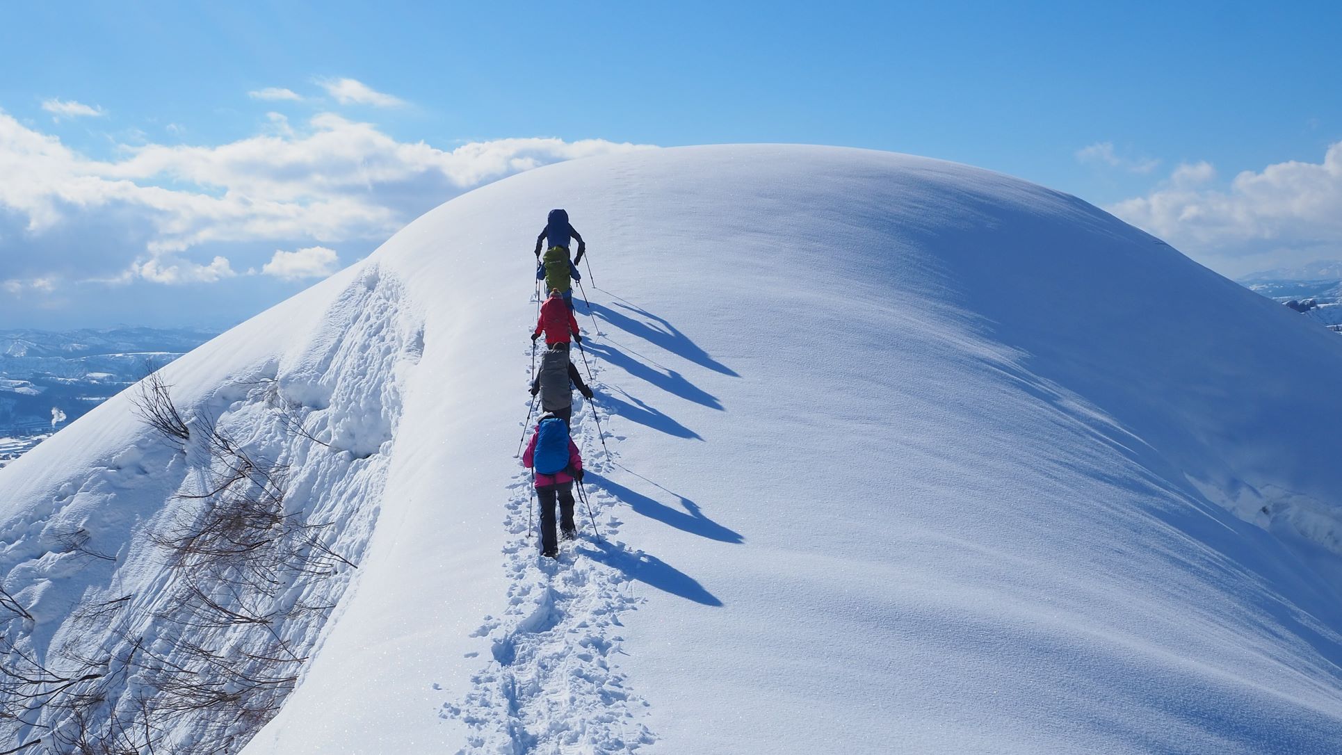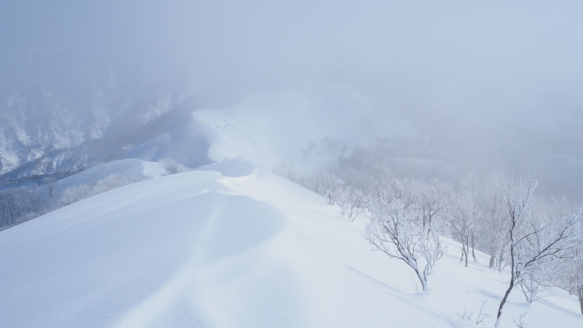 魚沼にはボイ(ボヨ)山と呼ばれる低木のヤブ山が多い。無雪期には身動きができないほどのブッシュが冬になって雪に埋もれるとそこは絶景のパラダイスになる。