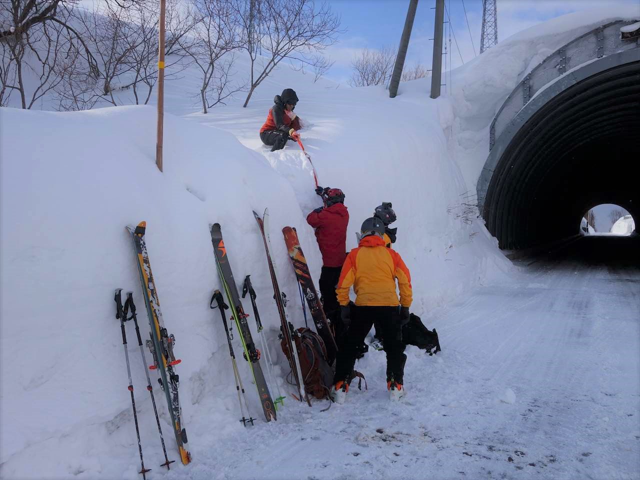 最後は,よじ登った雪の壁を慎重に降りれば無事帰還である.