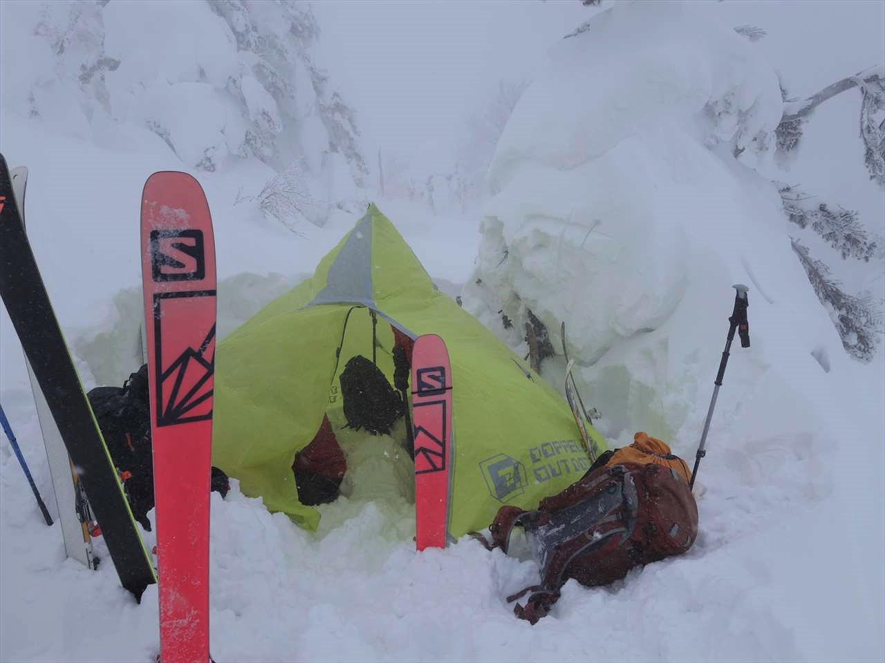 時間も早いので,いつものようにフライを張ってしばし休んでから滑る.