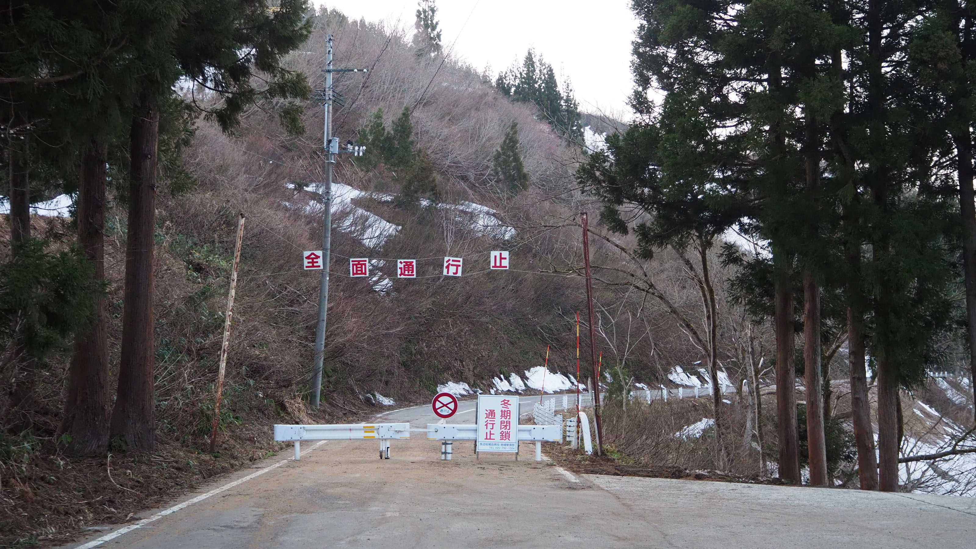 国道252のゲート 本当に雪が少ない。