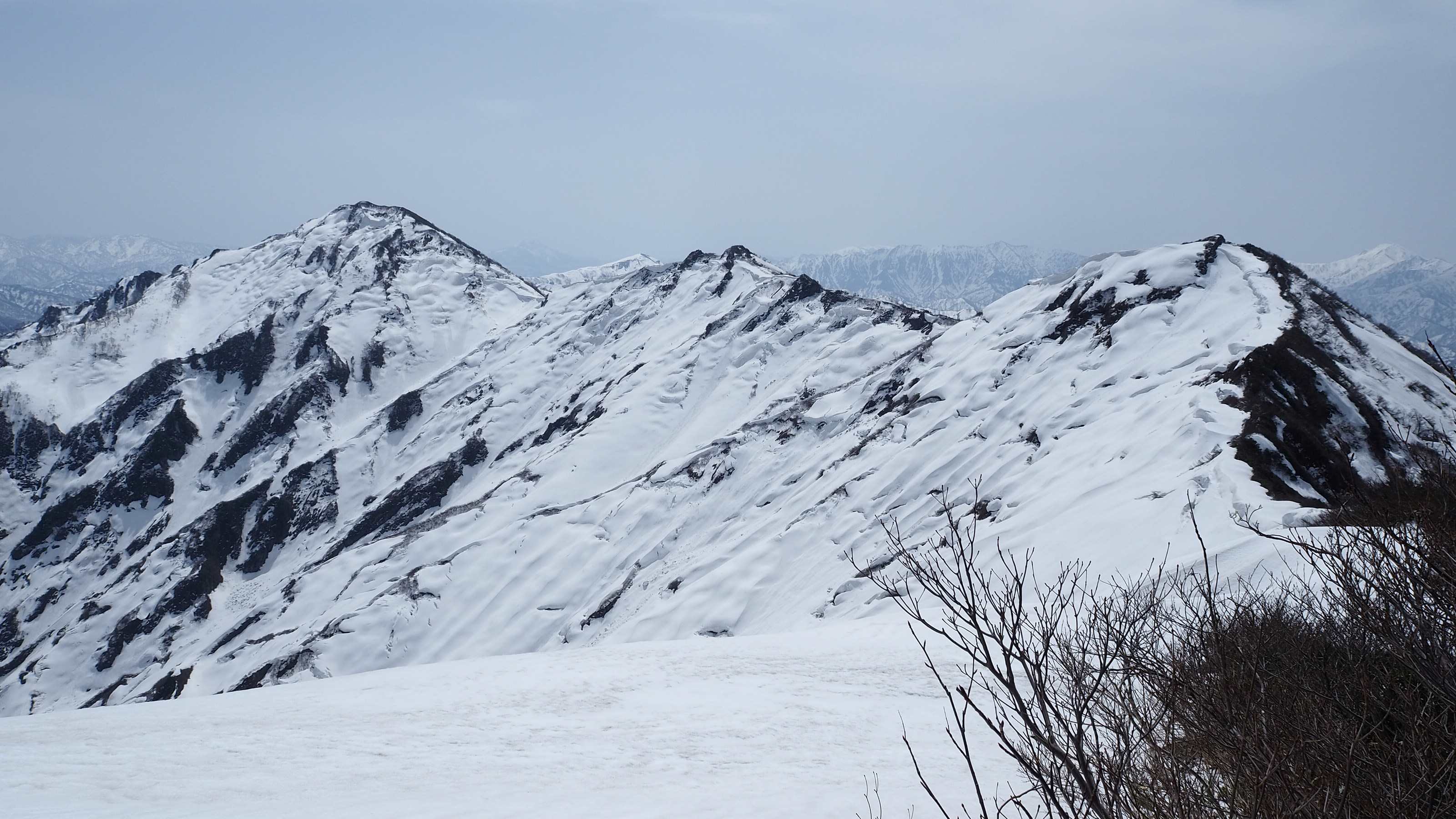 いつかは、と思いつつももう体力のほうがリミットになってきたので、昨年思い切って出かけた。しかし、雪割れがひどく思ったより時間がかかって百字ヶ岳で引き返した。