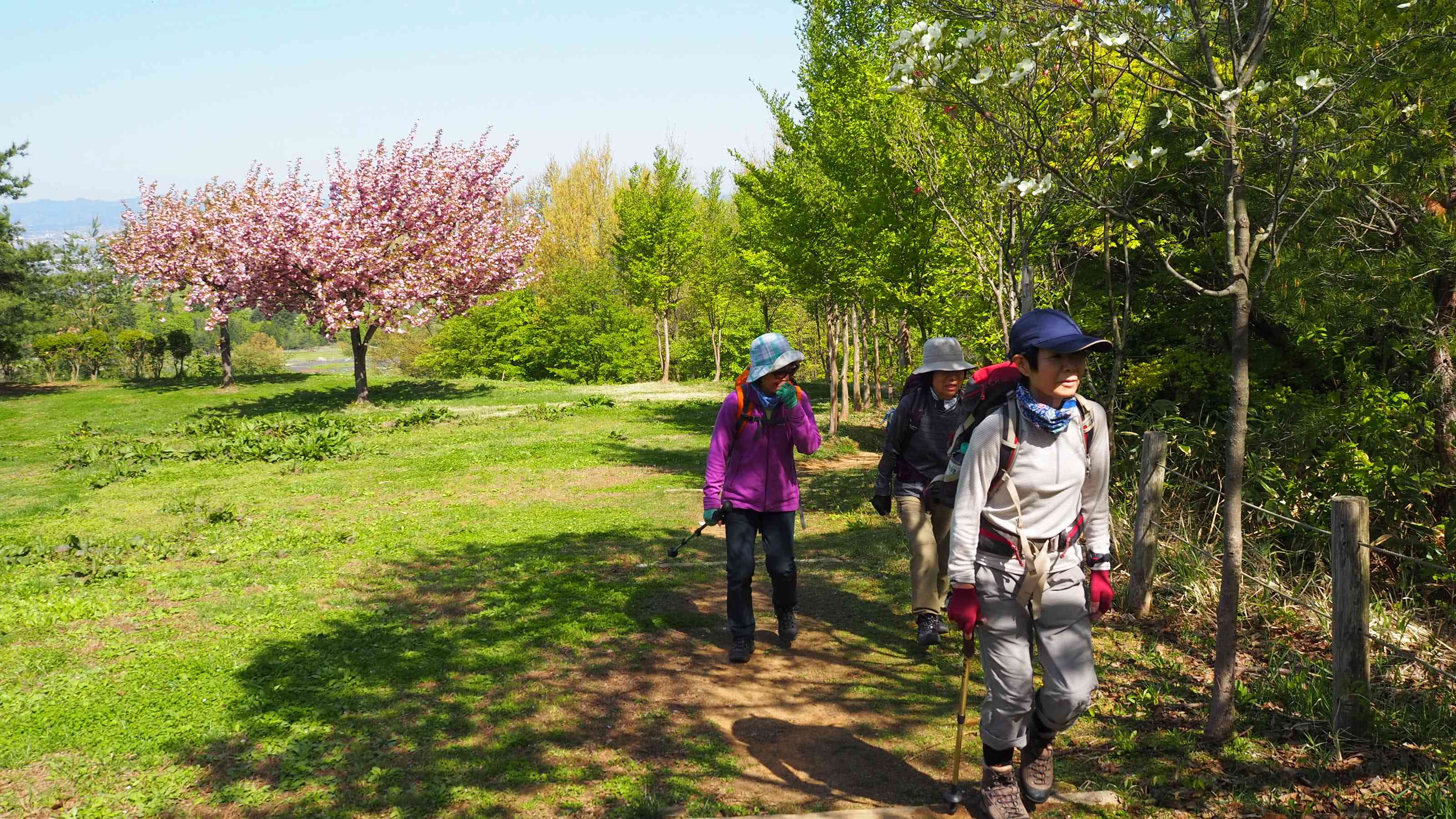 最初は八重桜の咲く中を歩いていきます。