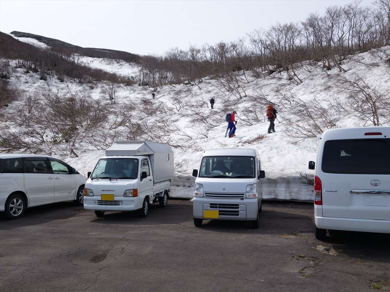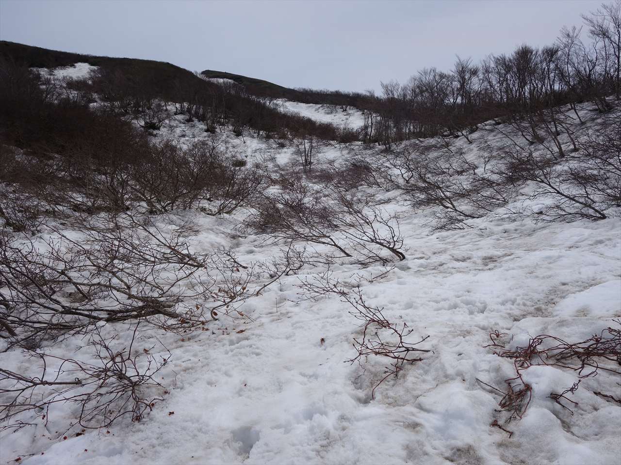 駐車場所から少々藪っぽいがすぐに板を履いて問題なく登ることができる.