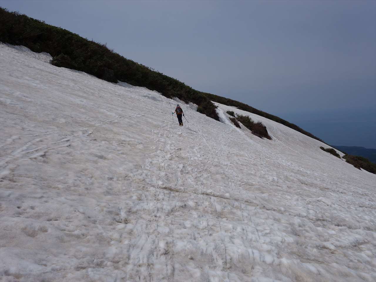 【少しだけ下って隣の雪渓へ移動】