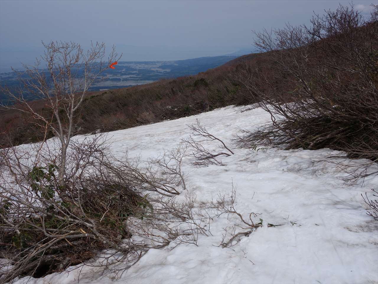 昨年同様,御浜小屋までは雪はつながっていない.