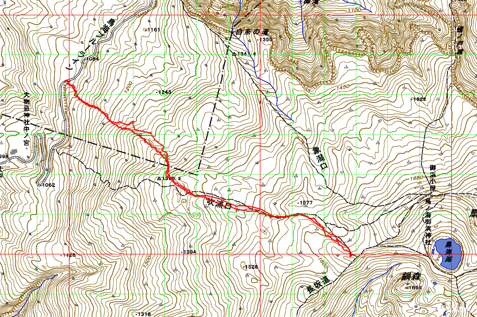 【実録時間】 駐車場所【標高1070m】9:02 - 長坂道鞍部付近【標高1640m】10:37 - 10:56 - 駐車場所 11:15