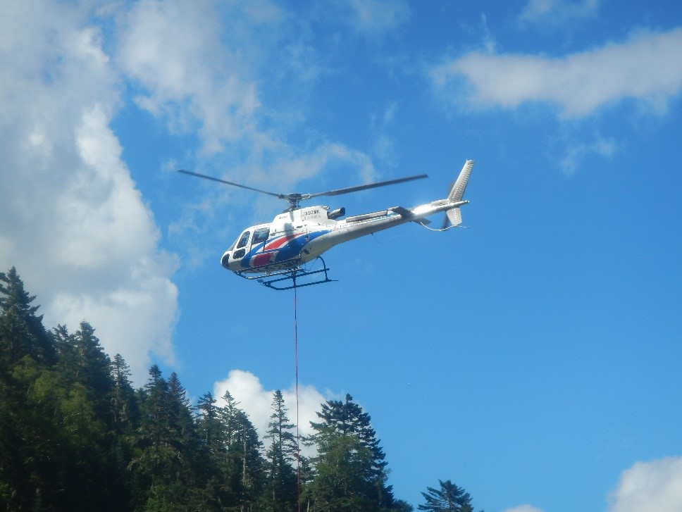 <白根御池小屋では荷揚げでヘリコプターが行き来していた>
