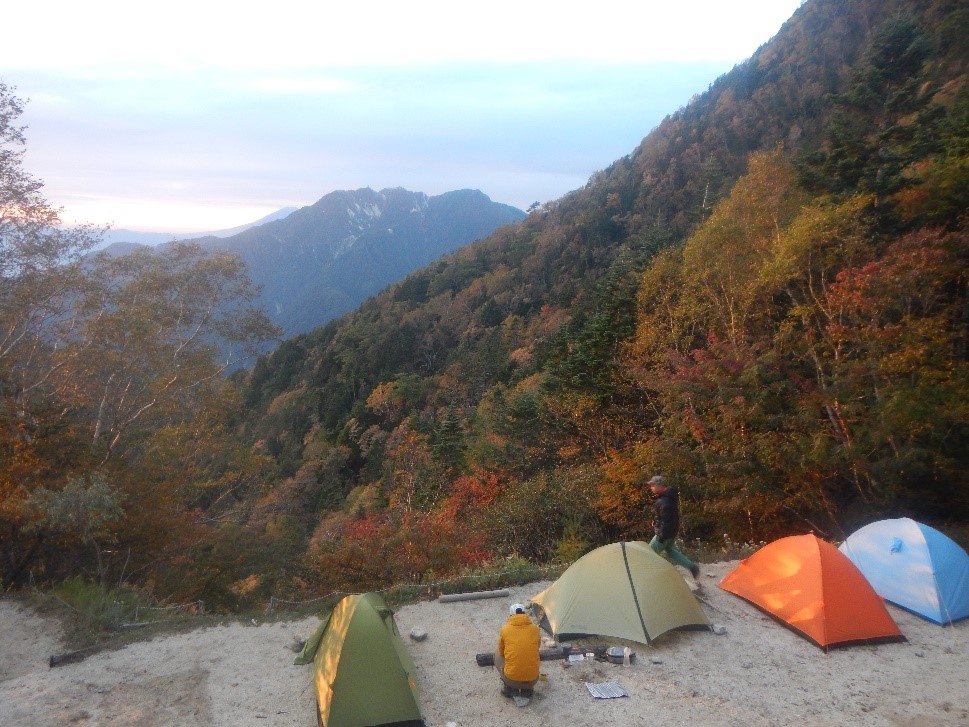 <展望抜群のテン場。七丈小屋から少し離れている>