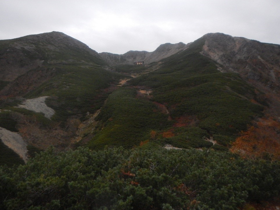 <松峰小屋。登山道から少し下った所にある>
