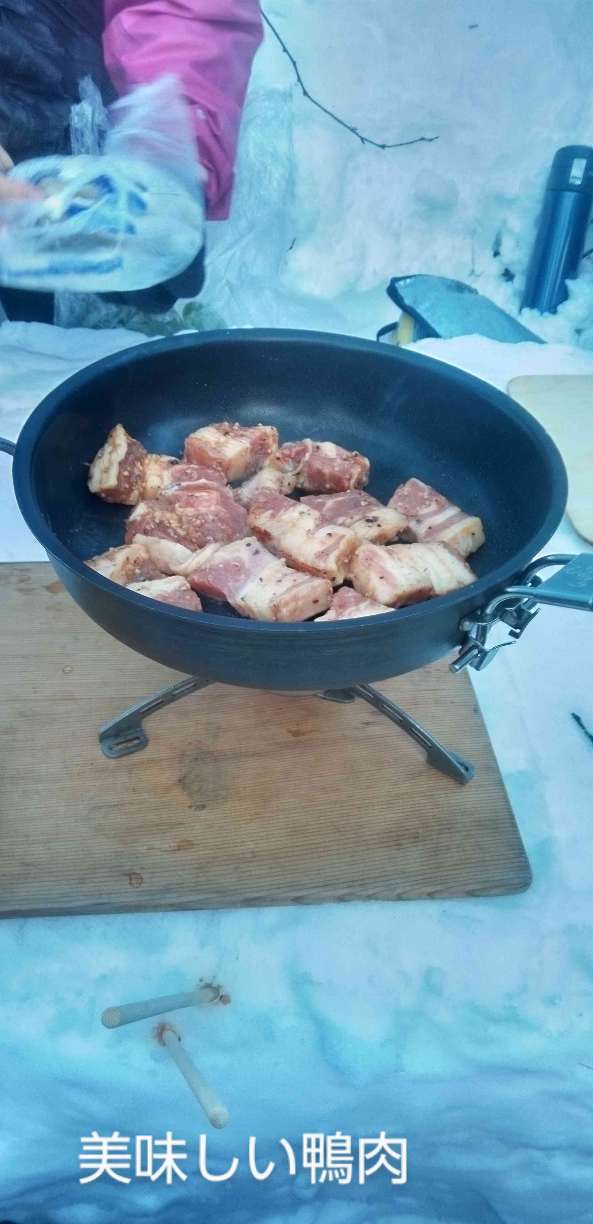 時計を見て昼食場所を選定。鴨肉のご馳走に手作りケーキも出たりで、クリスマス山行にふさわしい食卓となりました。