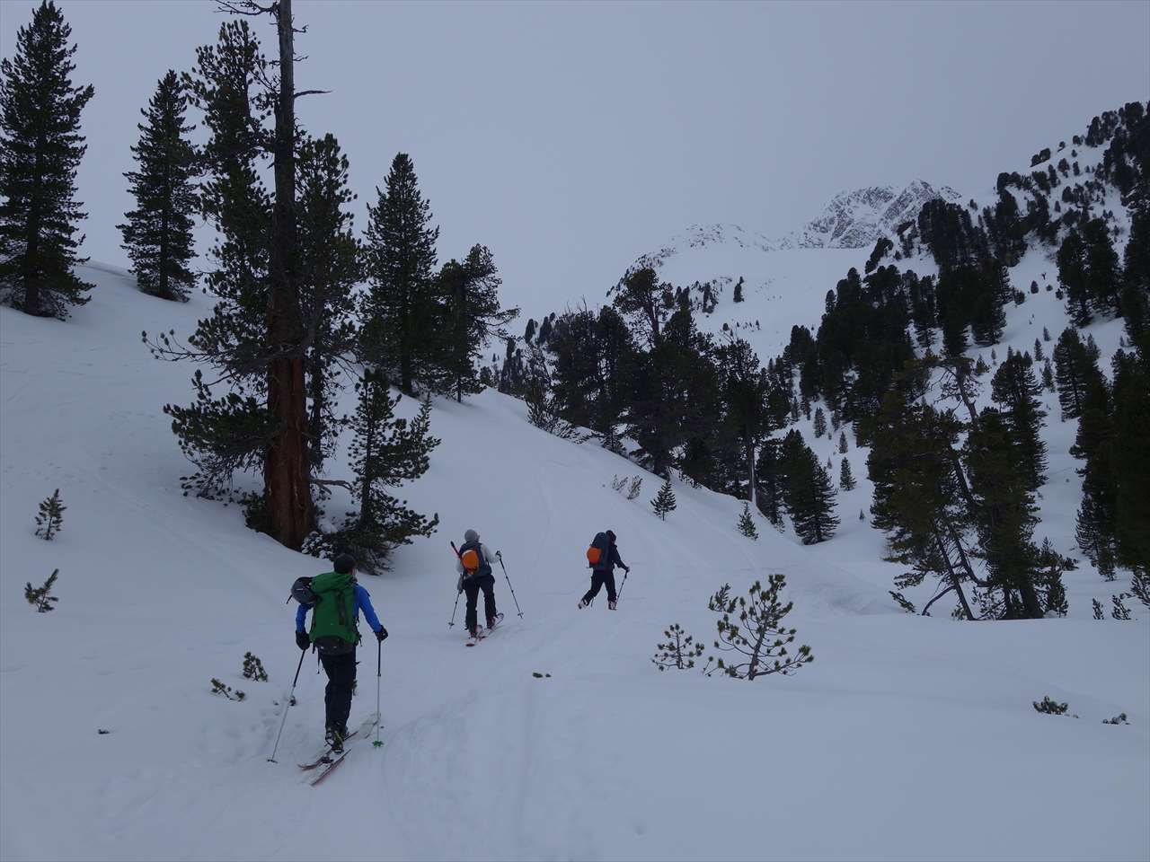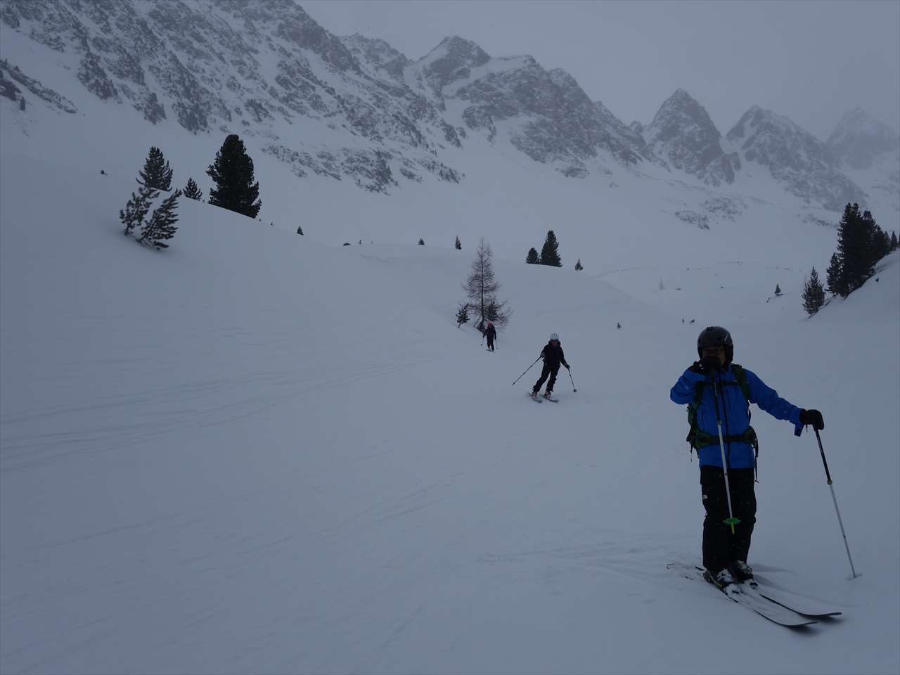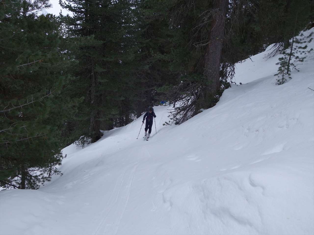 谷底は3cm程度の新雪が載って,滑りやすい.
