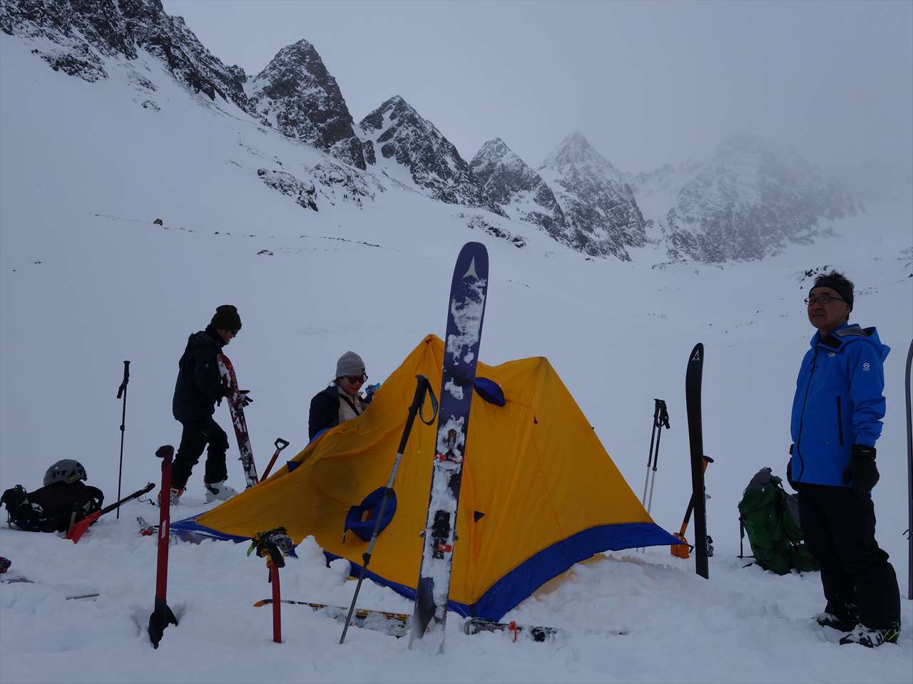 テント祭りの儀を終えて外に出ると,小雪が降り出してきて視界も悪くなっている.
