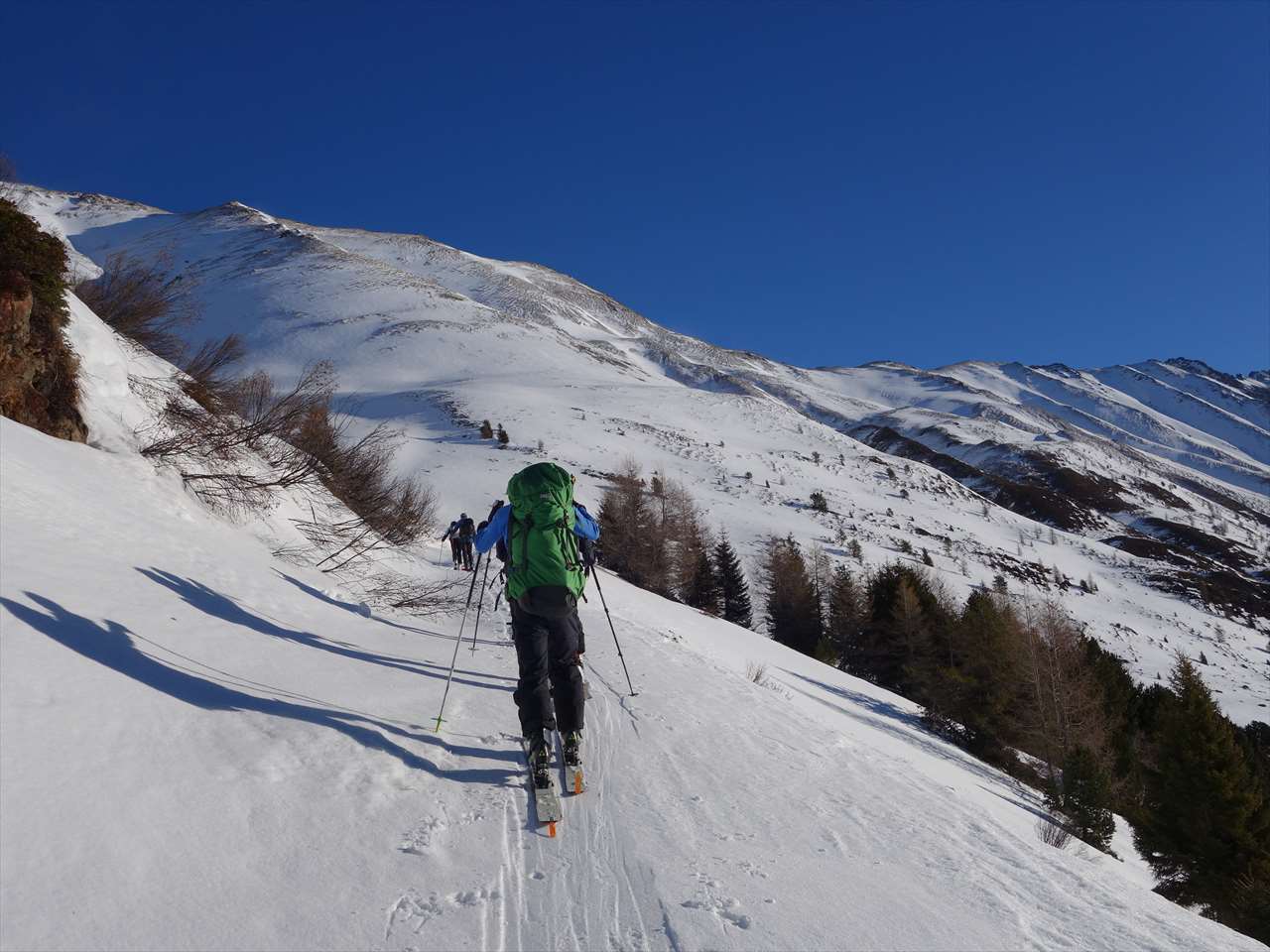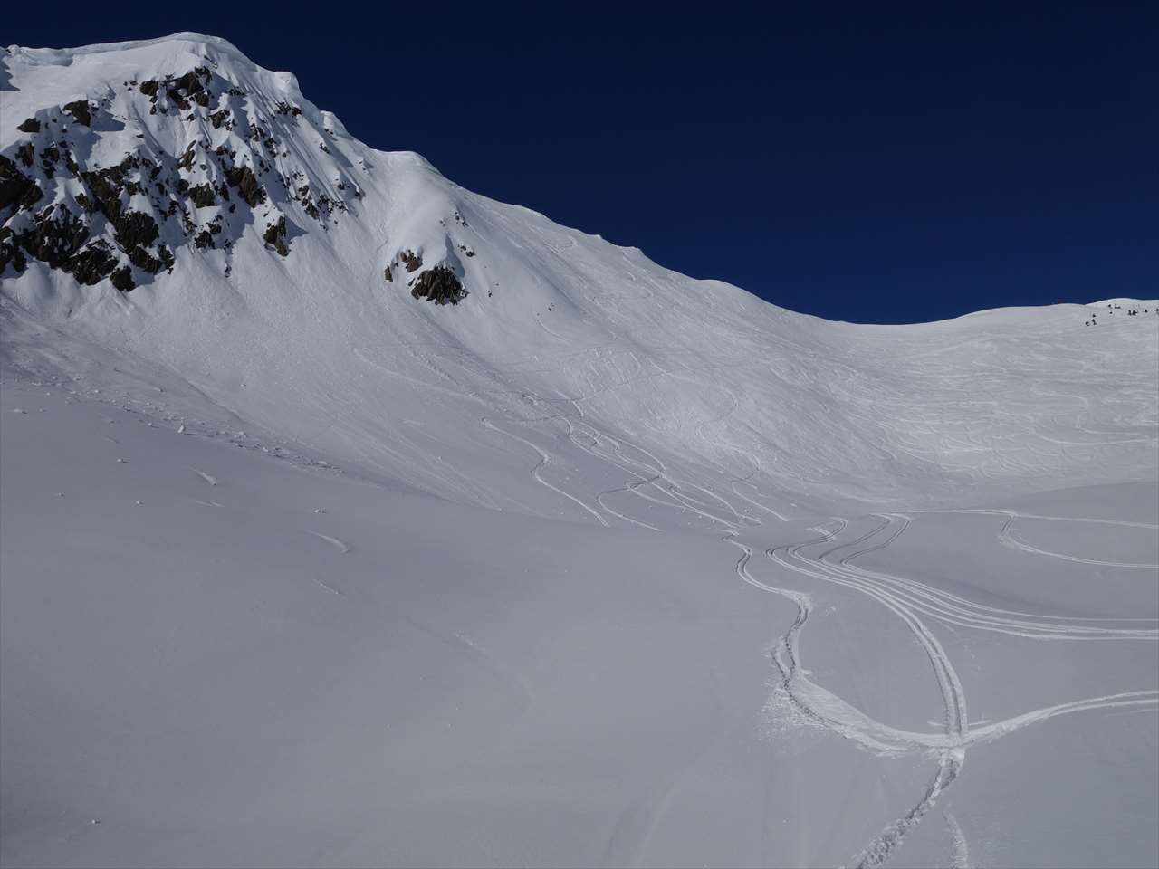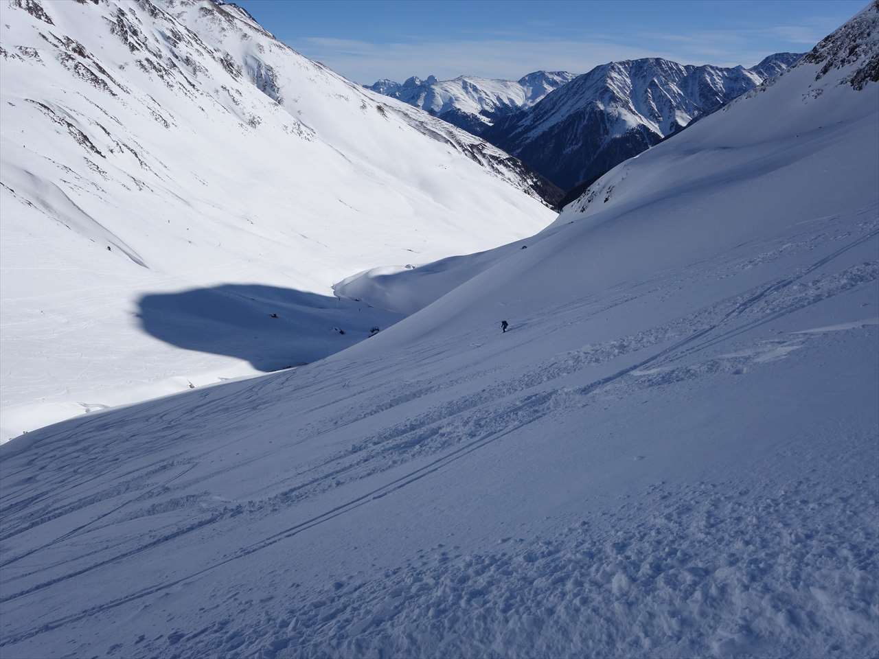 このころには西側の斜面は日陰になっていて,思いのほか楽しく滑られる.