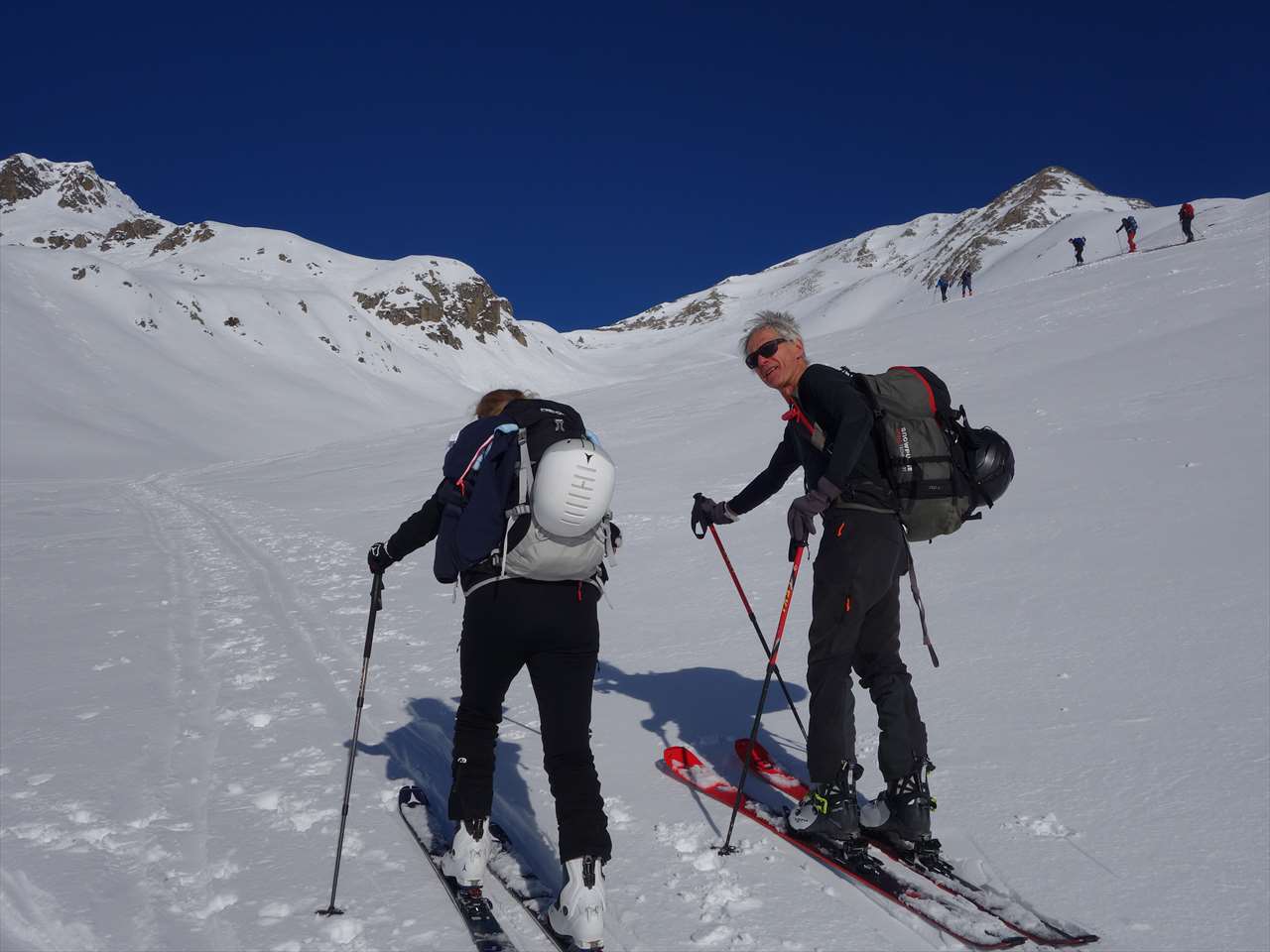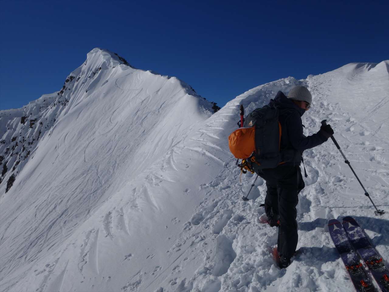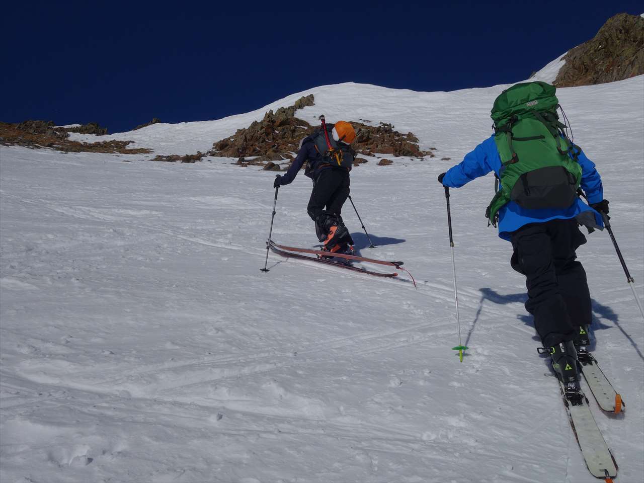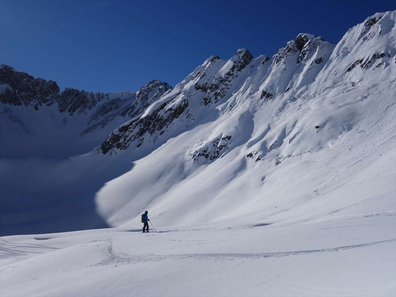 このころには西側の斜面は日陰になっていて,思いのほか楽しく滑られる.