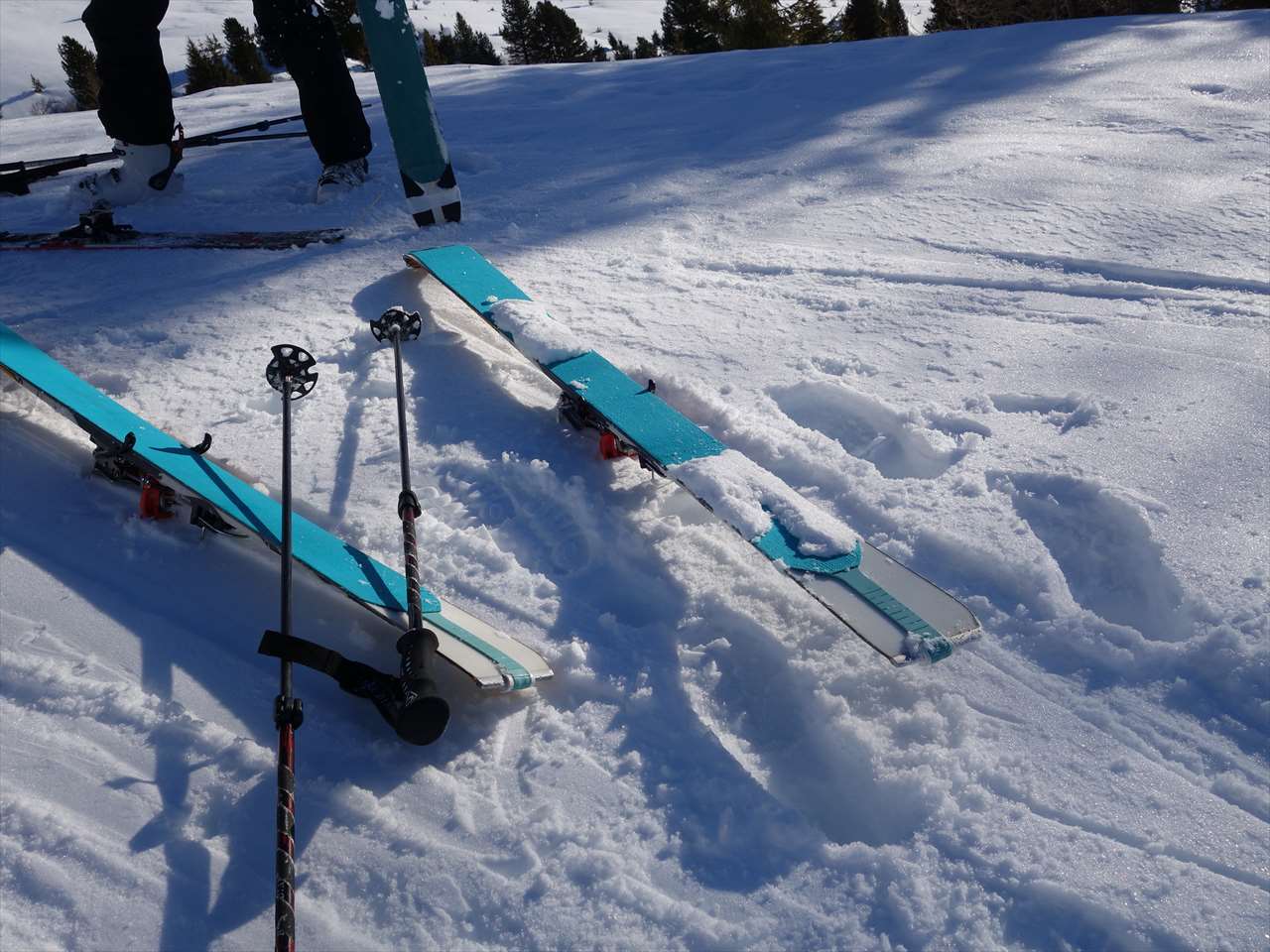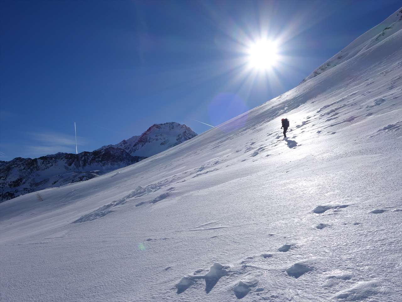 フィルムクラストした斜面に太陽の日が反射して綺麗だ.