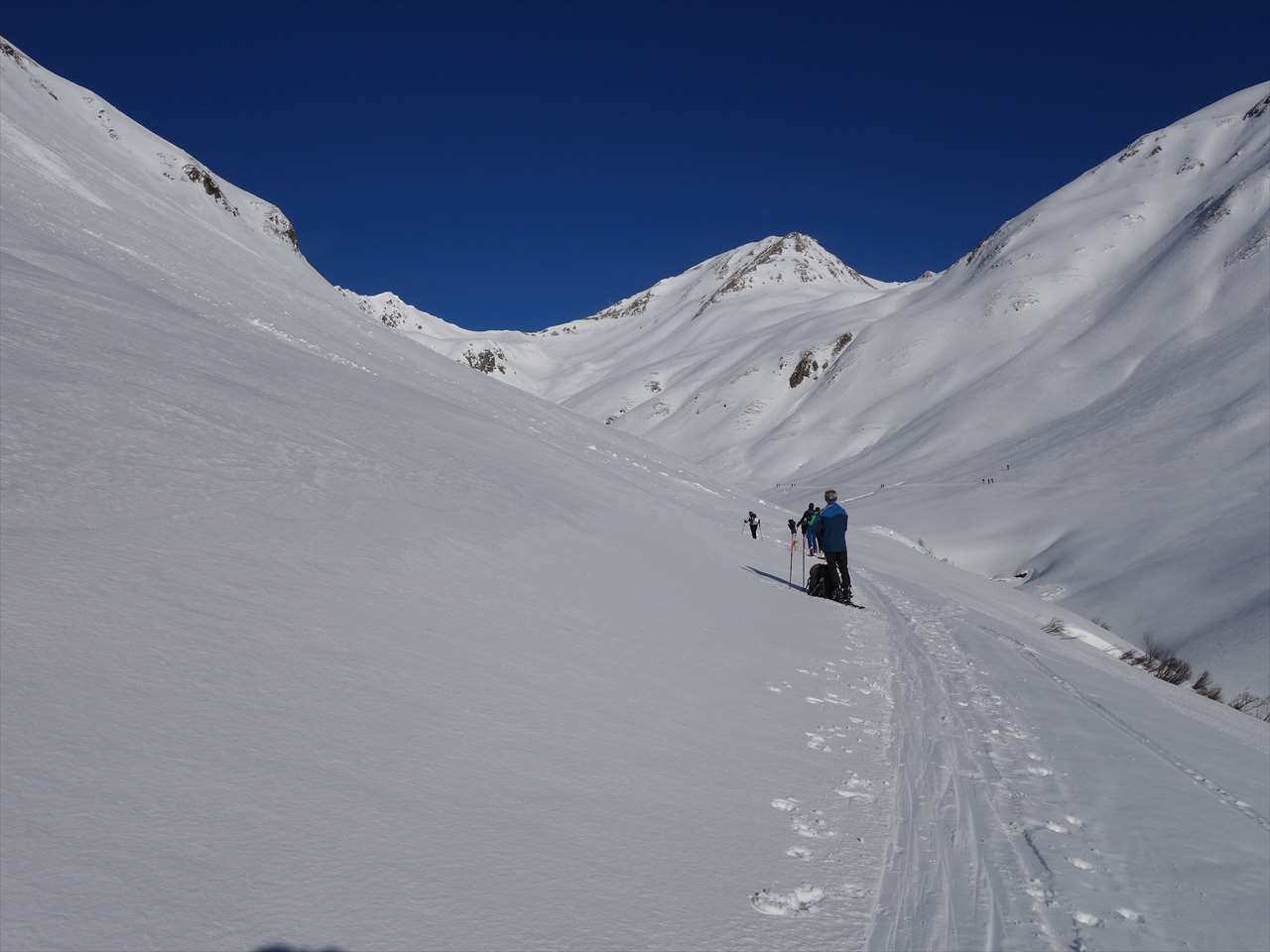 しばらくはトラバースで右岸側をトレースに従ってひたすら歩く.