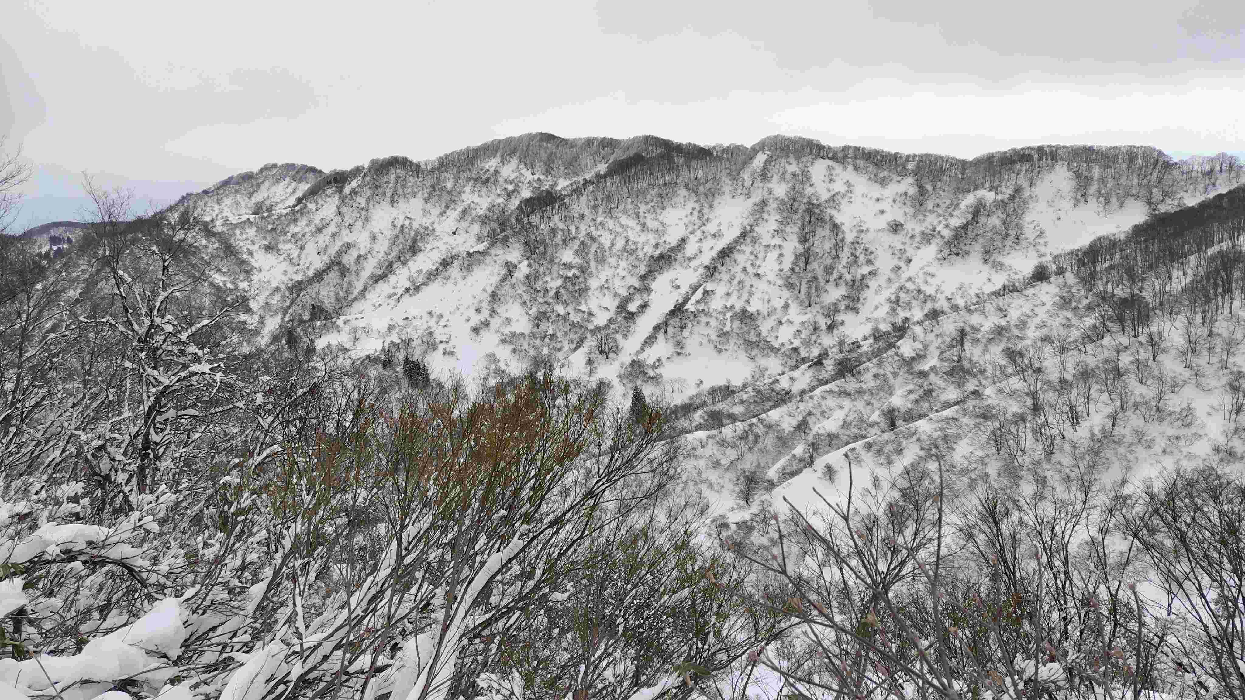 2月は暖かい日が続き長岡東山も標高400mくらいまではほとんど雪がなくなっていたが、前日からの雪で久しぶりに一面真っ白になってきれいな冬景色が戻ってきた。2月は暖かい日が続き長岡東山も標高400mくらいまではほとんど雪がなくなっていたが、前日からの雪で久しぶりに一面真っ白になってきれいな冬景色が戻ってきた。