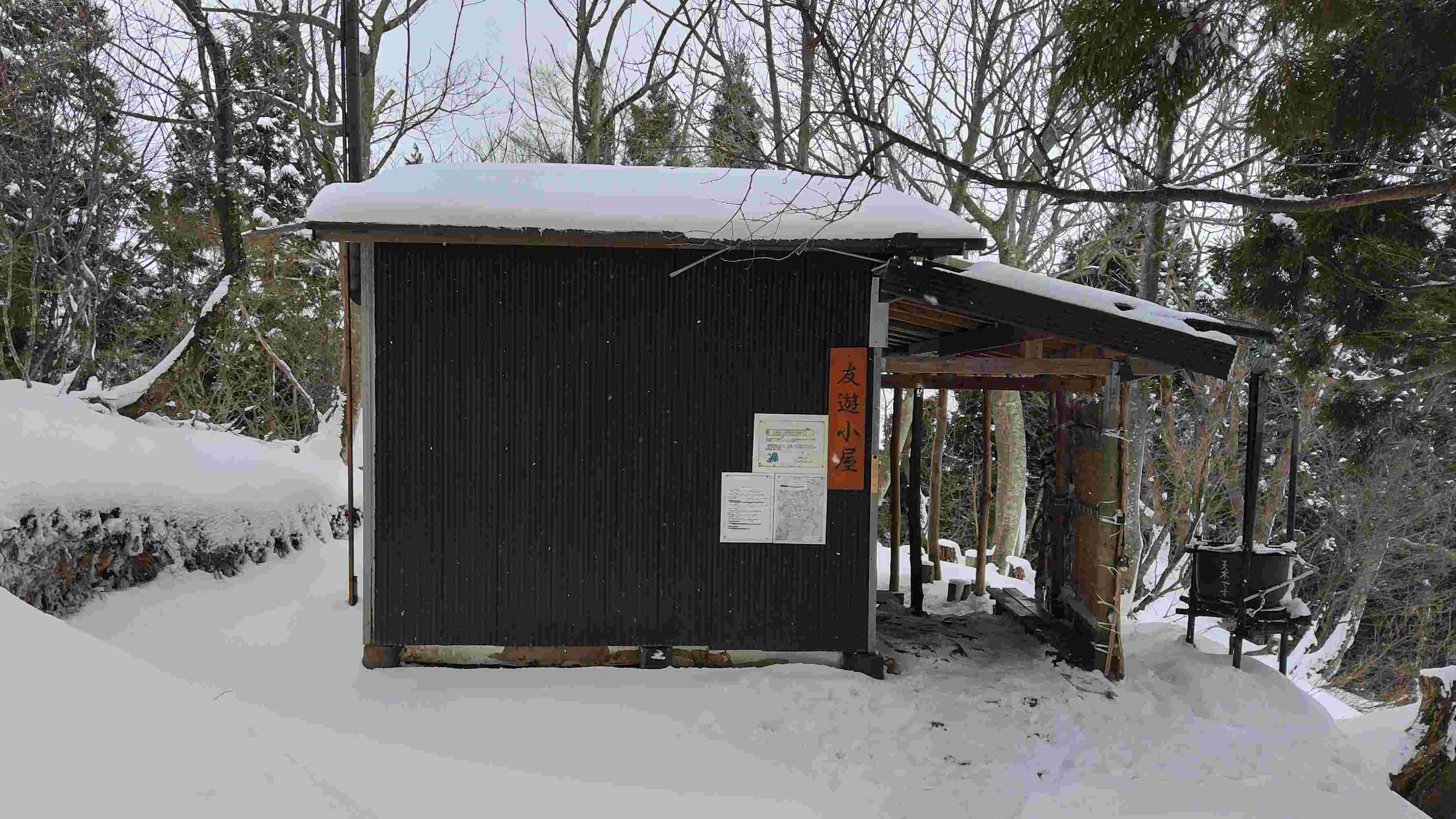 来た道を戻り友遊小屋まで行ってランチタイム。この小屋は小さいながらもとてもきれい。地元グループの人が薪ストーブに火を入れてくれているので顔がほてるほど暖かい。外にあるトイレも感激するほどきれいだ。