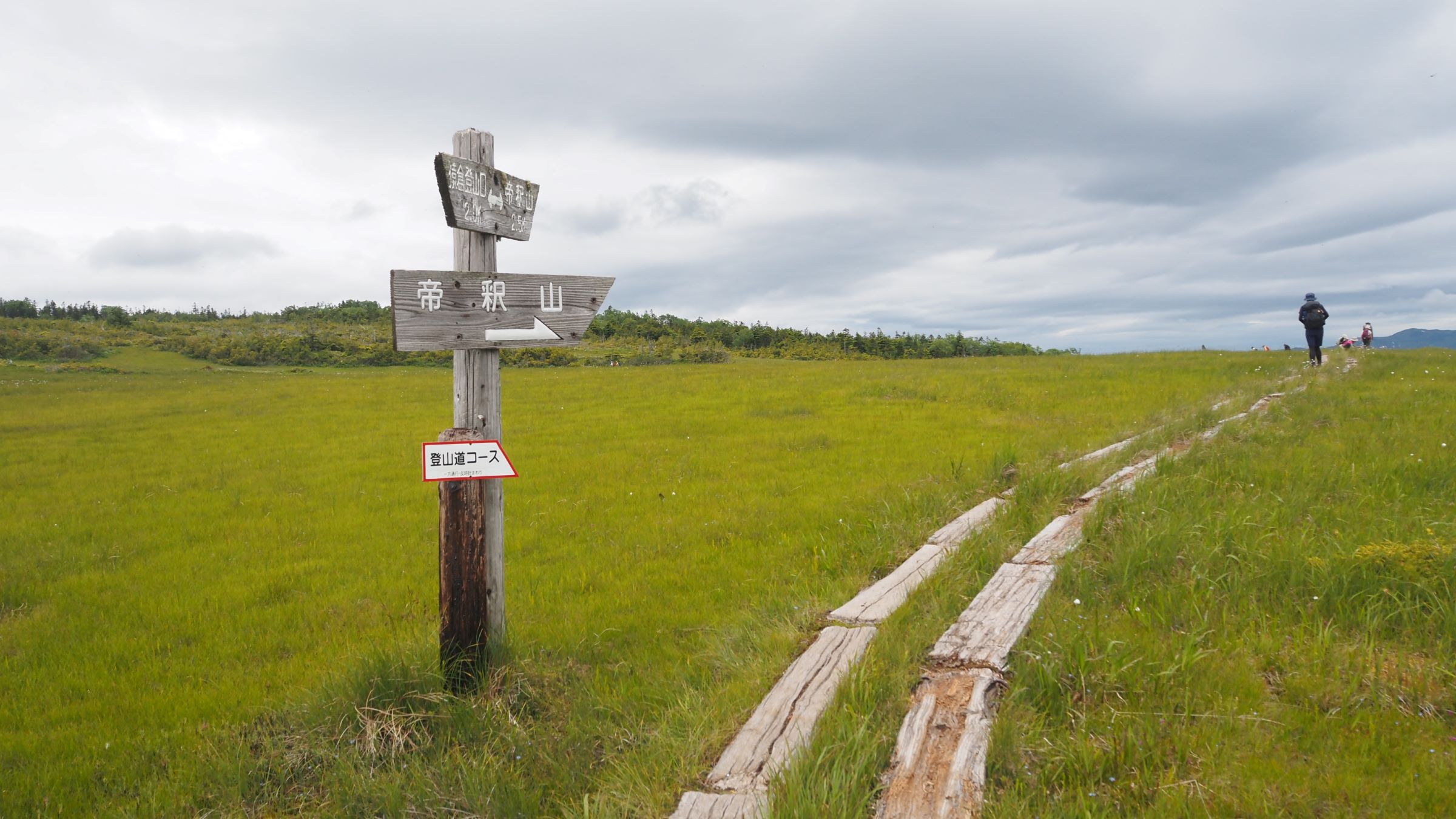 ついにたどり着いた山上に広がる湿原。ここには木道が2ルートあって反時計回りの一方通行となっている。
