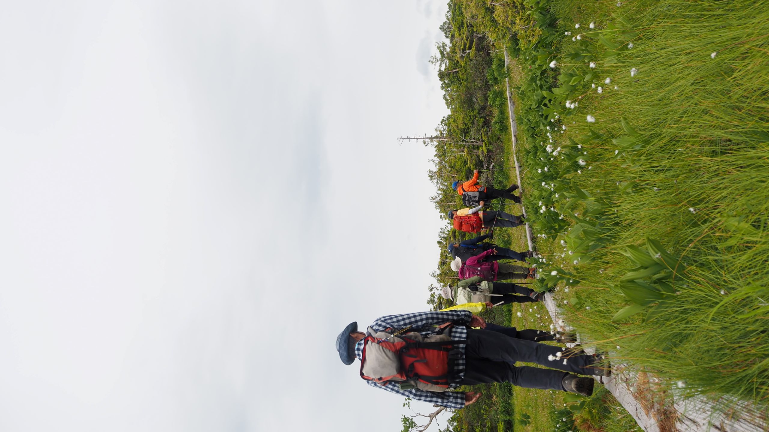 この時期の湿原の主役はワタスゲ。木道の脇にワタスゲが多いのはなぜだろう。どこの湿原に行ってもそうだ。