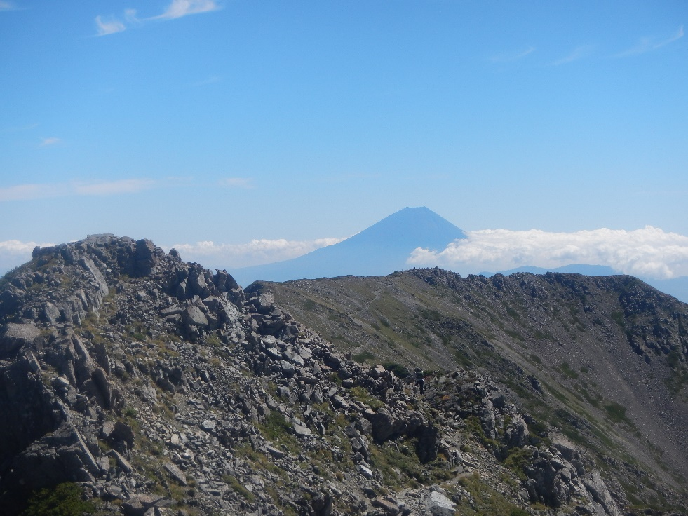 白根三山を縦走する人たちのほとんどは広河原から北岳に登り、白根三山を越えて大門沢を下りるようだ。私だけ?反対回りで、展望を楽しんだ後、西農鳥岳を越えて農鳥小屋に下りた。