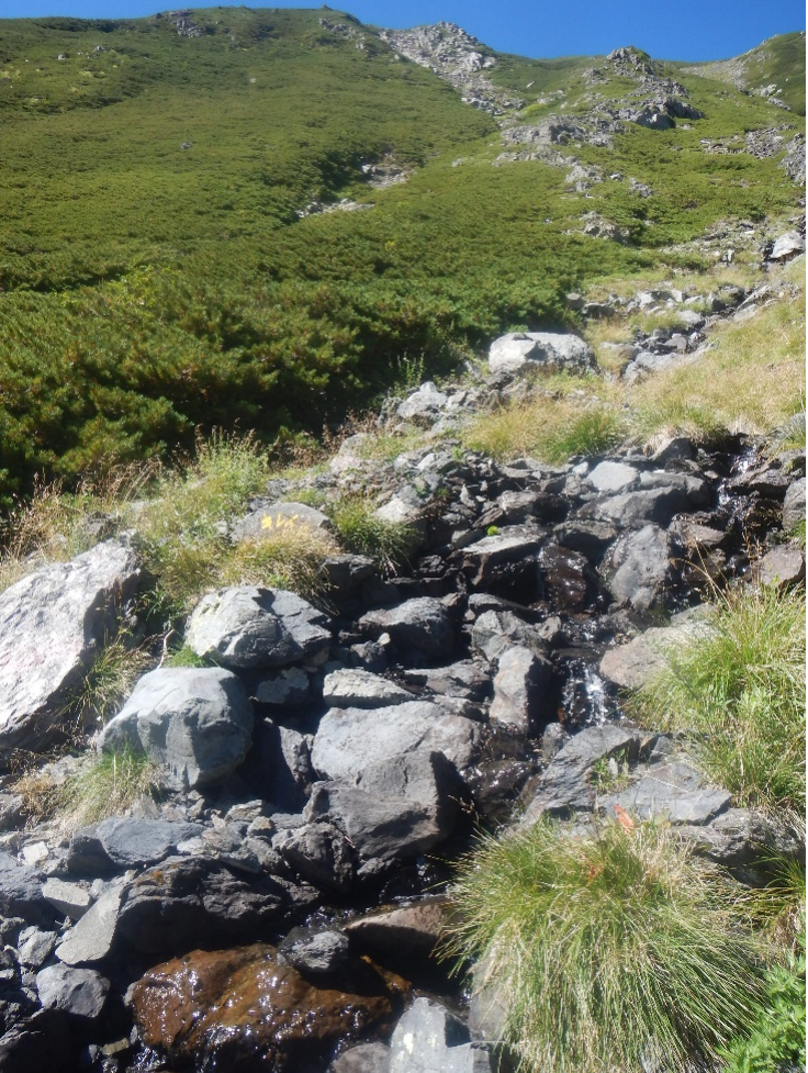 そして、三峰岳の直下くらいに流れている小沢が大井川の源流域だった。ここから間ノ岳に向かって遡行していくと源頭となり、そして流れはいくつもの支流を合わせ、大河となって太平洋に流れていく。